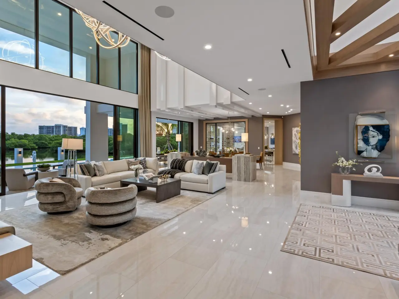 ''New'' Modern/Organic-inspired Sanctuary Point Estate sited on 173+/- feet of wraparound waterfrontage in The Sanctuary by awarding-winning team of Stephen Albanese Builders, Quinn Miklos Architects and Marc-Michaels Interior Design. A towering foyer entrance sets the stage for this 3-level estate encased in glass with panoramic water views and tranquil bird preserve setting from all major rooms. Epic primary wing with sleek dual baths, wardrobes and a separate lounge. Resort-style pool/spa and patio with entertainment lanai and cabana. Rare, protected mega-yacht side dockage with straight 131+/- feet. Other amenities include Club Room with a separate Office, 3rd Level Game/Exercise Room, Wine Room, Elevator and 4 bay garage. Truly setting a new level in Boca Raton waterfront estate living!