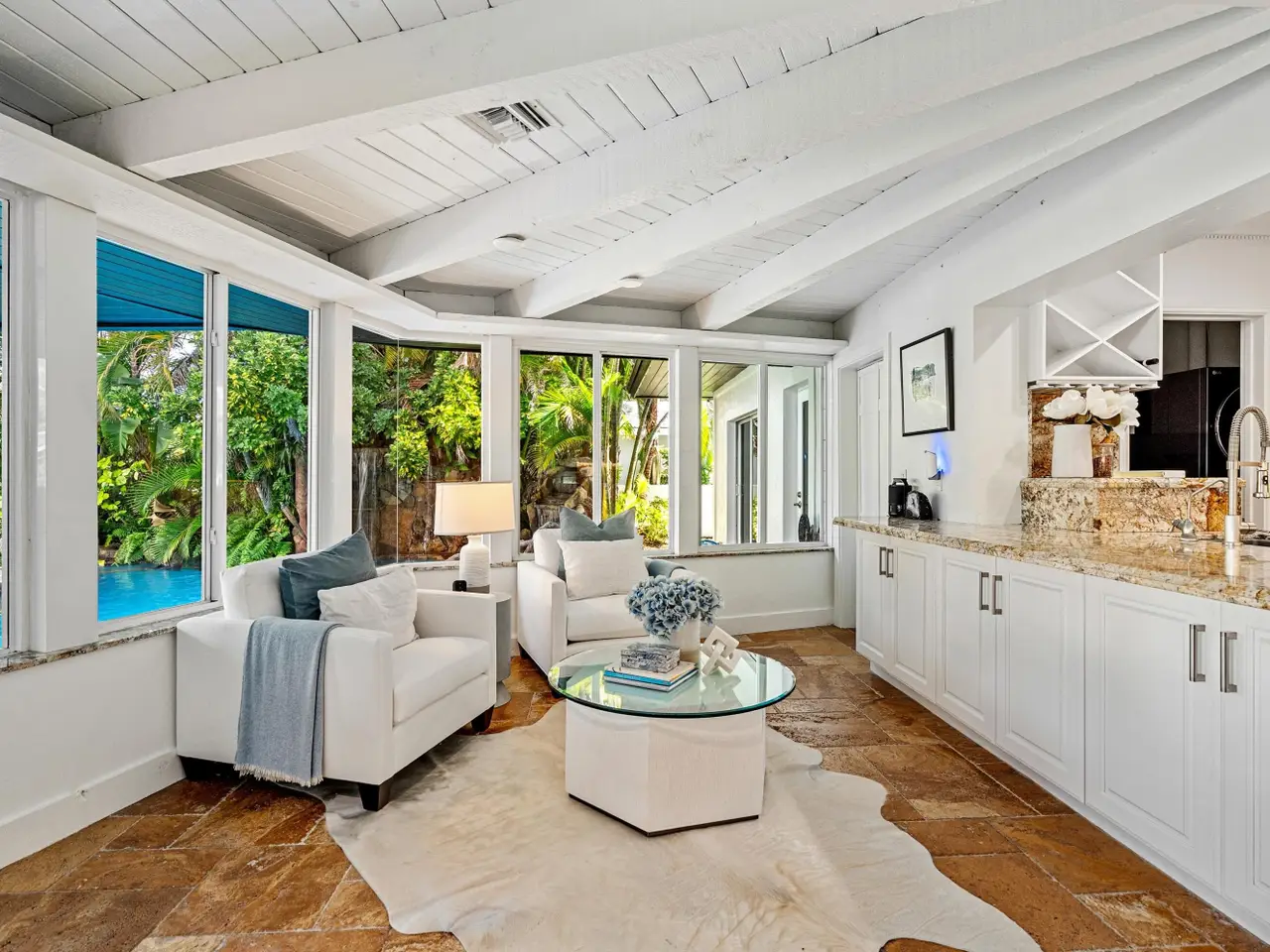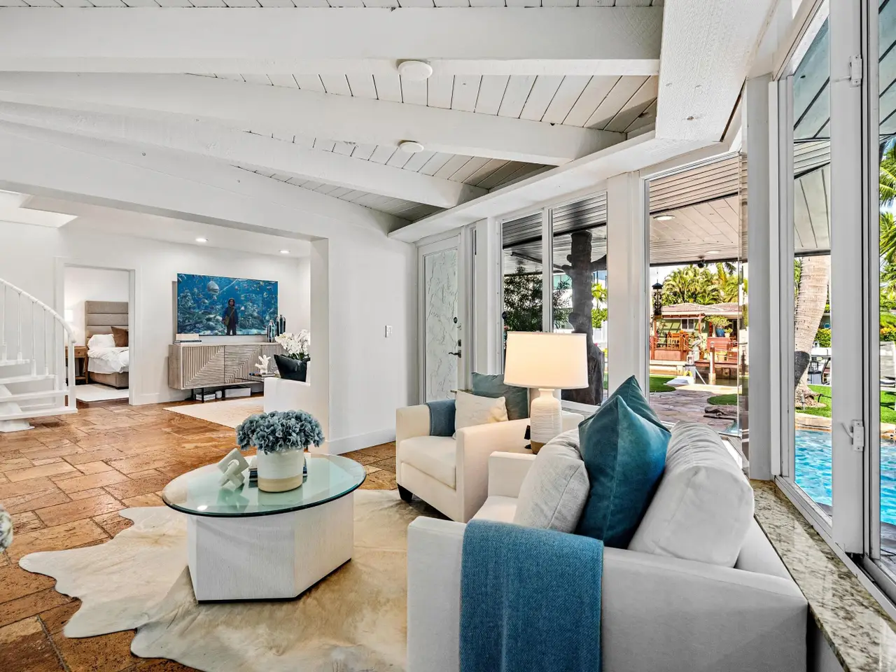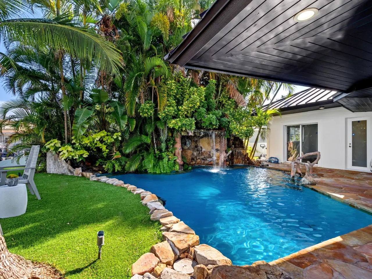 Remastered West Indies-Inspired Deepwater Estate sighted on approximately 80 feet of waterfrontage in prestigious Harbour East. This casual coastal residence features four bedrooms, 3.1 bathrooms, and a single bay air conditioned garage. Up the spiral staircase, an expansive loft is bedecked with expertly crafted shiplap walls. The property boasts a paradisal outdoor living area with a covered lanai, a lagoon-style pool with a grotto, a putting green, and a private boat dock. Other amenities include an upstairs media room, updated bathrooms, impact windows and doors, Nest climate control system, and Lutron lighting systems.