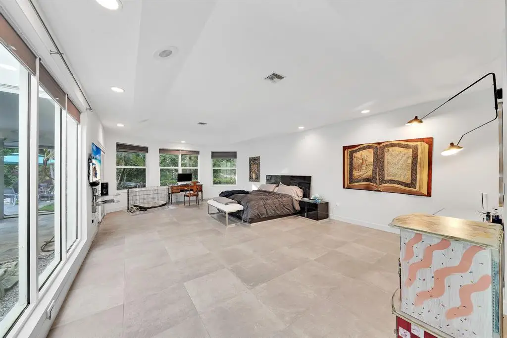 Spacious game room with elegant flooring