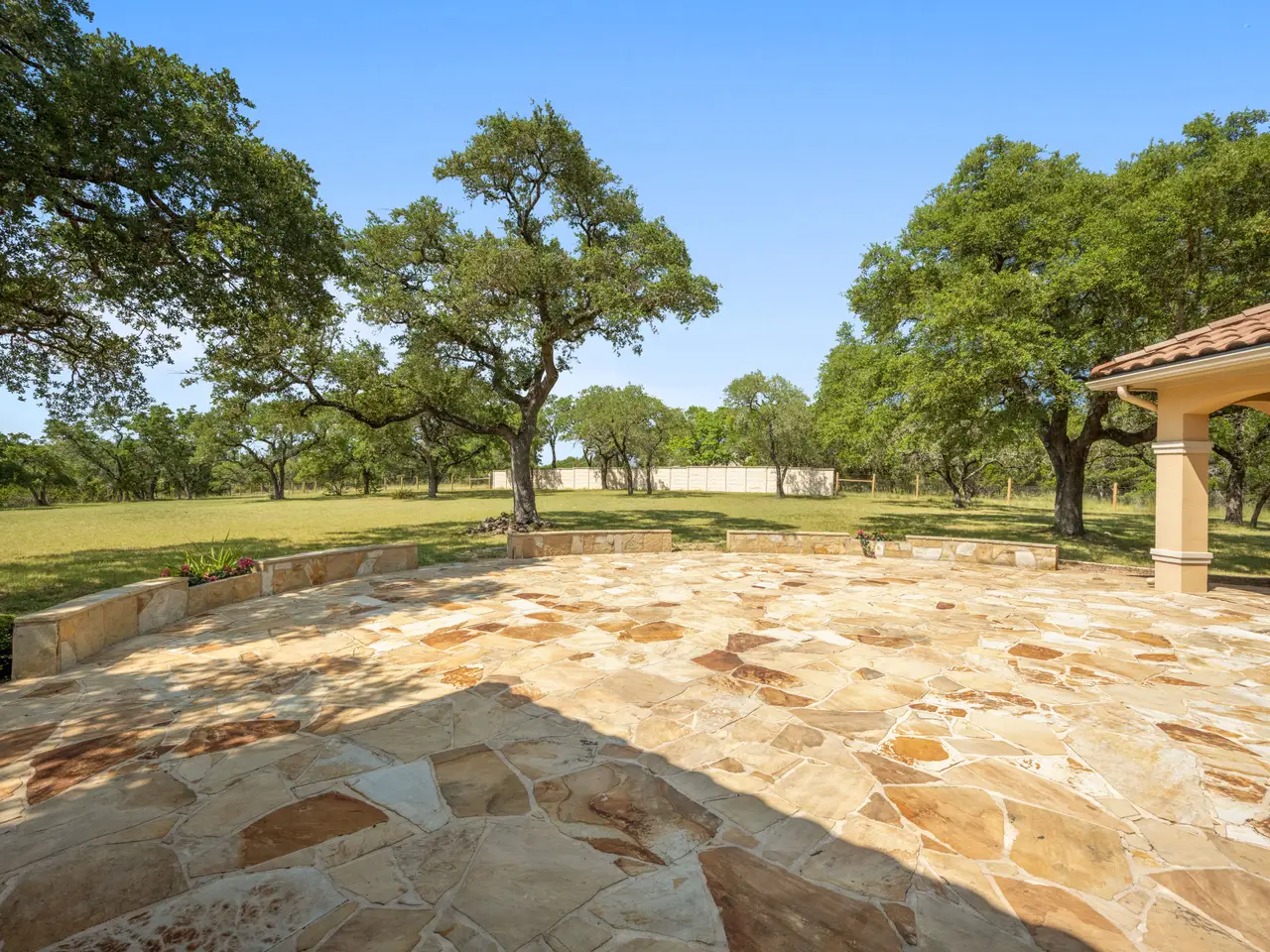 • Expansive flagstone patio with outdoor kitchen