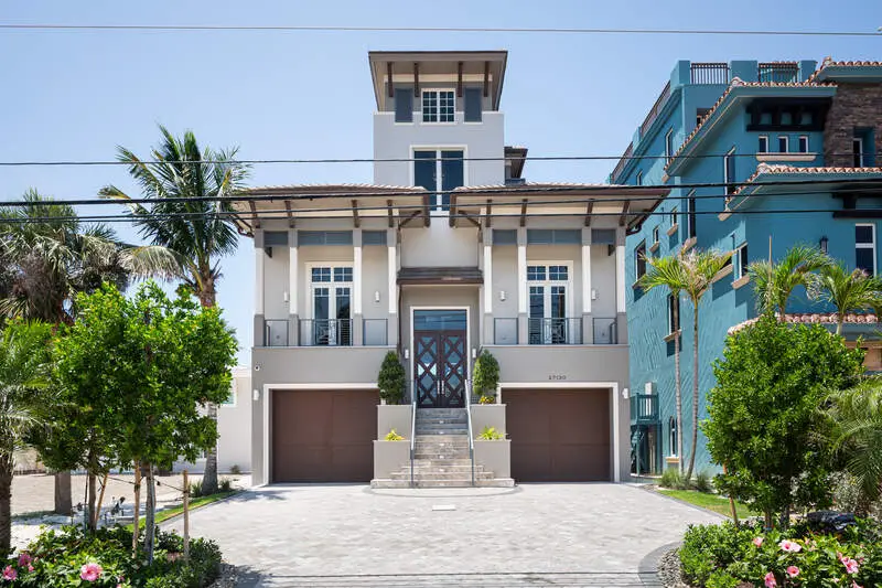 2018-BUILT DIRECT BEACHFRONT MASTERPIECE WITH AN ELEVATED POOL! Enjoy the sugar white sands and turquoise waters of the Gulf as your daily backdrop. Custom-built by the renowned Potter Homes, this coastal contemporary home is thoughtfully designed with only the finest finishes-from rich white oak flooring to soaring coffered ceilings with handcrafted wood paneling. Crafted like a fortress, this home is built with solid concrete block construction, hurricane impact glass, and electric storm shutters. The expansive open floor plan is perfect for entertaining, enhanced by fully pocketing sliders that lead to a RARE, ELEVATED POOL DECK. This spectacular outdoor space includes a sleek infinity-edge pool and spa, a summer kitchen, outdoor fireplace, and pool bath-perfect for seamless indoor-outdoor living with breathtaking Gulf views. Spanning 5,214 square feet under air, this home offers 5 bedrooms, 5 full baths, 2 half baths, and a spacious garage with room for 6+ vehicles. The gourmet chef's kitchen boasts an oversized quartz island, dual-tone cabinetry in warm espresso and crisp white, an ocean-blue backsplash, and top-of-the-line appliances. The luxurious primary suite is a serene escape with panoramic Gulf views and access to an open-air balcony. It has a spa-like bathroom with a massive walk-in shower with bench seating and multiple showerheads (including a rainfall option), a freestanding soaking tub, and dual vanities. Additional highlights include 2 new HVACs, a private elevator, a wet bar with a wine fridge, electric interior screens, and smart home features (Crestron sound/media/lighting system). Ideally located within walking distance of top beachfront dining and just minutes from Mercato, The Promenade, Waterside Shops, Coconut Point, 5th Avenue, and the International Airport nearby. This home is the pinnacle of beachfront living.