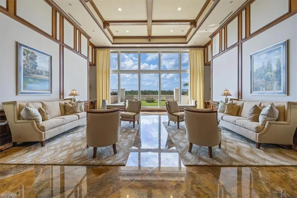 This highly-desirable 3rd-floor unit is in impeccable condition and boasts awe-inspiring sunset views of the Gulf, sunrise views to the East and Estero Bay. With a spacious living area of just over 3,200 square feet, this residence comprises three bedrooms and 3.5 bathrooms. Numerous upgrades can be found throughout, including stunning travertine and wood flooring, generous closet space, a screen enclosed lanai plus a balcony, multiple elevator access points, electric roll down storm shutters, and much more. The meticulously designed kitchen is equipped with upgraded cabinetry and adorned with granite countertops. The primary bedroom features two closets, oversized bath with shower, whirlpool tub, closed of toilet room, and lanai access. Palermo offers coveted amenities such as a state-of-the-art fitness center, welcoming social and gathering spaces, a resort-style pool with a spa, two large guest suites, billiards, a movie theater, additional unit owner storage, and more! The Colony itself offers an array of outstanding amenities, including a championship golf course, a Country Club, tennis courts, a 34-acre beach park, pickleball, bocce, a canoe and kayak park, and the Bay Club.