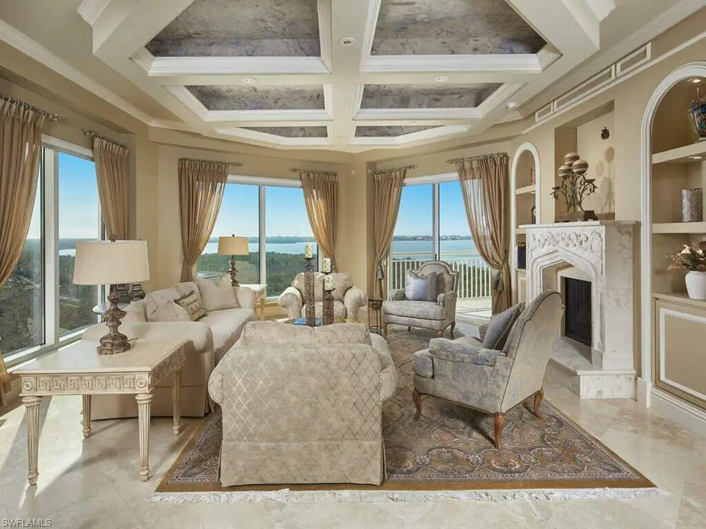 Enjoy the perfect vantage point above Estero Bay looking to the Gulf beyond from Azure 701. Three bedrooms plus den, three full and one-half baths, and an oversized private enclosed two-car garage below. Stunning decor and finishing touches by renowned Gary David Designs, generous living spaces with living and family rooms, ample balcony spaces, private elevator lobby with secured elevator. Gourmet kitchen with gas cooktop, Wolf double wall over, wet bar with wine refrigerator. Enjoy the Azure lifestyle with gas cooking in both the kitchen and grille on your balcony. Experience all that Bonita Bay offers with access to a private marina, community beach facility, the finest club lifestyle available with the Bonita Bay Club's dining, golf, tennis, pickleball, fitness and spa facilities.