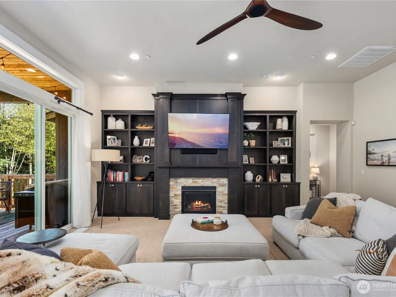 Experience refined living in this stunning Rambler-Style home w/ a Finished Basement, tucked away in a quiet cul-de-sac & backing to a greenbelt for exceptional privacy. Step inside to soaring vaulted ceilings & extensive millwork that create a warm, elegant atmosphere. The open-concept layout seamlessly connects the living, dining & kitchen areas--perfect for both everyday living & entertaining. Main Floor features Well-Appointed Primary Suite, Laundry Rm & Office Space. Downstairs, you'll find 4 additional bedrooms, mini kitchenette & Rec Rm - ideal for guests or multi-gen-living. Enjoy the comfort of A/C, Tankless WH, Plantation Shutters, Custom Closet Organizers, New Exterior Paint, SBLSD, Tehaleh Amenities, Parks, Trails & More!