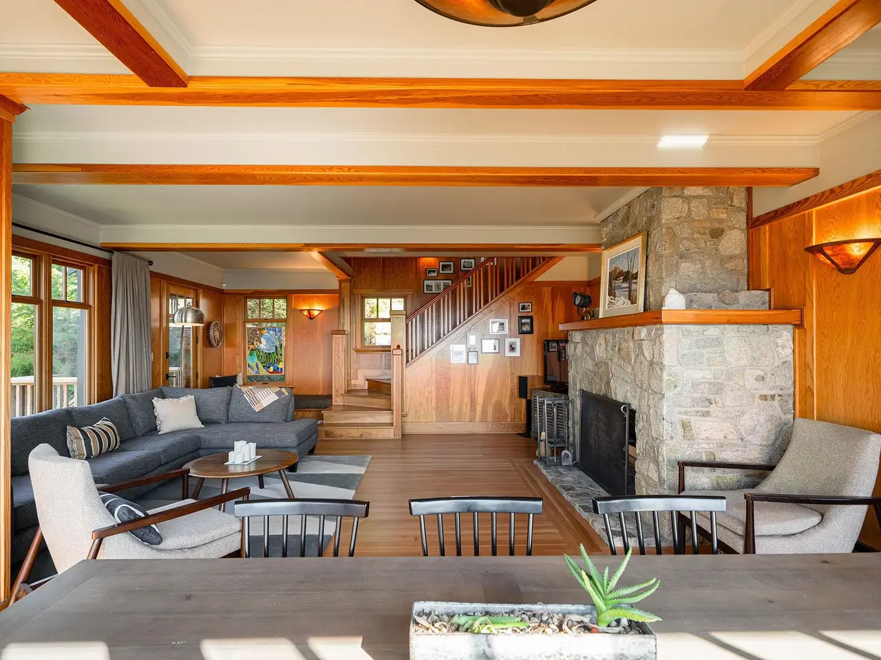 One of the most revered acreage properties on Bowen Island, priced well below assessed value. This private 5-acre elegant, rural estate features a stunning Craftsman home perched high with coastal ocean & island views from every room. The 4 luxurious bedrooms all have ensuites, and 2 bedrooms have their own entries - a perfect setup for a B&B. The kitchen is for those who entertain, with a 6-burner cooktop, double wall ovens, and a separate prep area. Craftsman homes are known for comfort, and this home is no exception with its wood-burning fireplace, warm wood paneling, coffered ceilings, and fir flooring. Outside is an established garden with apple, pear, Asian pear, quince, & cherry, plus many flowering trees & shrubs. It is an exceptional combination of nature, privacy, & luxury.