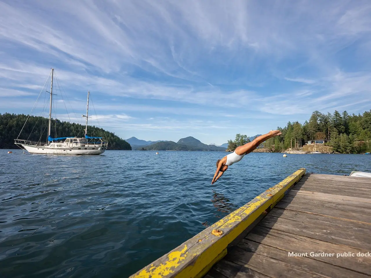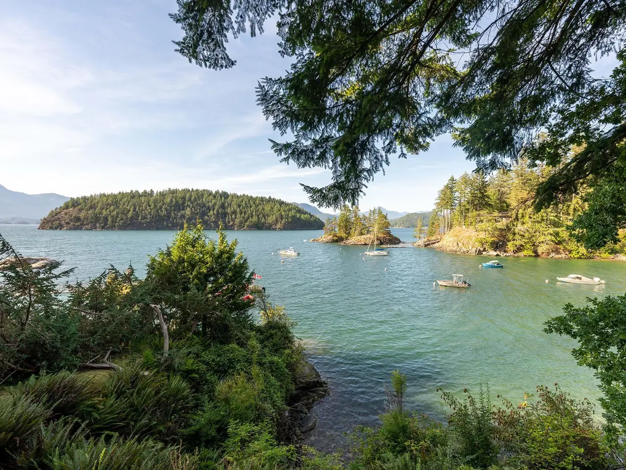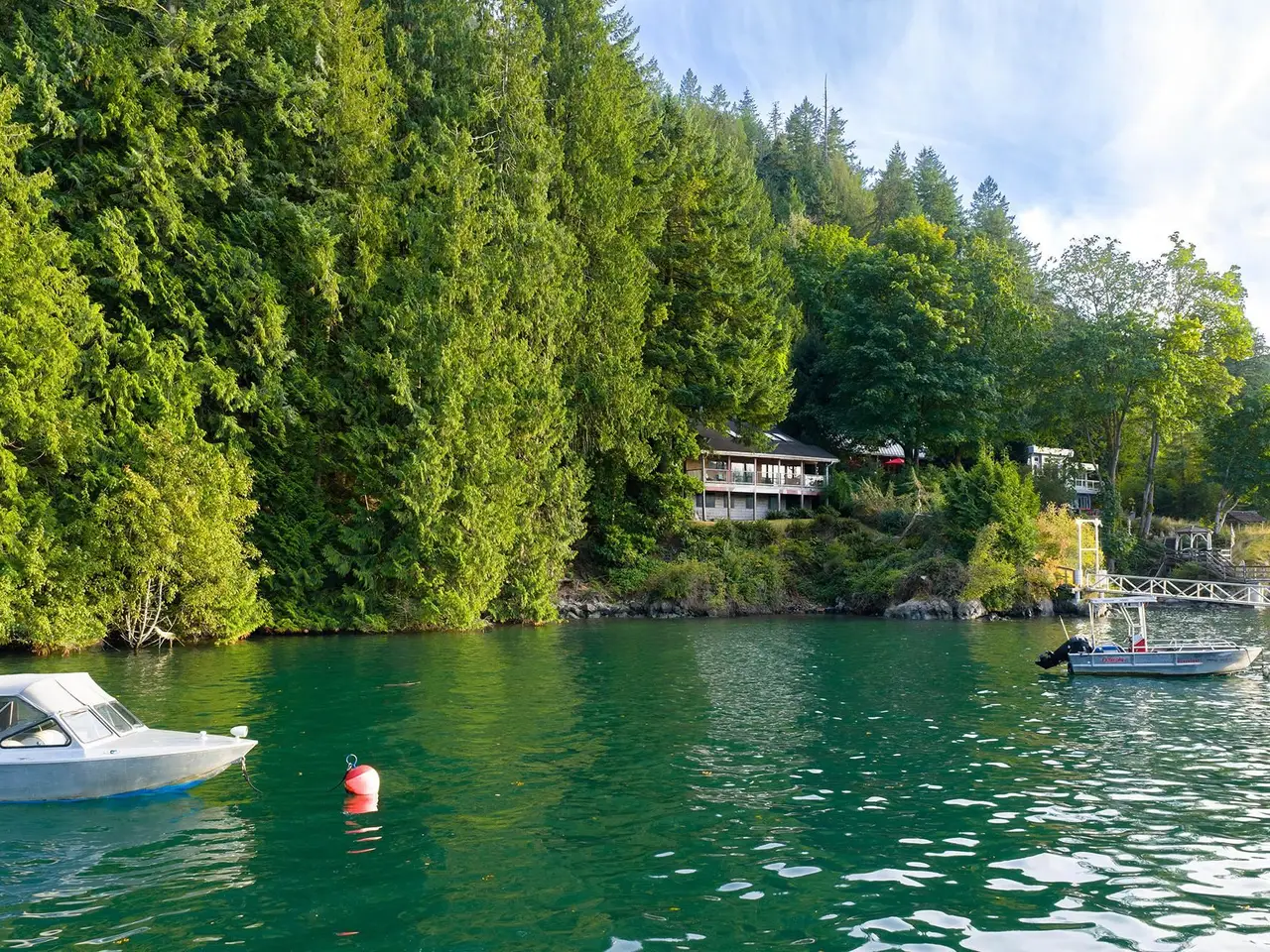 One of the most stunning settings on Bowen Island is on the Northwest side, where landscapes of nearby islands create picture-perfect Pacific Northwest vignettes. Sitting closer to the water than any of the neighbouring homes, there are uninterrupted and ever-changing views from Keats Island and the Sunshine Coast, to nearby Hutt Island and Gambier Island, and mountains to the north. Steps lead down to a sheltered bay where there’s the potential to add a dock. Living on the water here is a nature lover’s dream. Whether it’s pulling out the binoculars for a glimpse of frequently sited Orcas, or jumping on your paddleboard and checking out the sea life in the intertidal zone, or simply going for a moonlight swim, you’ll be in awe with the wonder that surrounds you in beautiful Galbraith Bay.