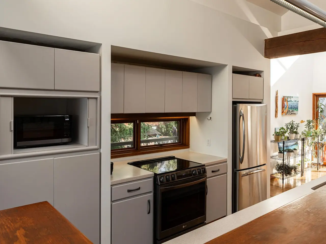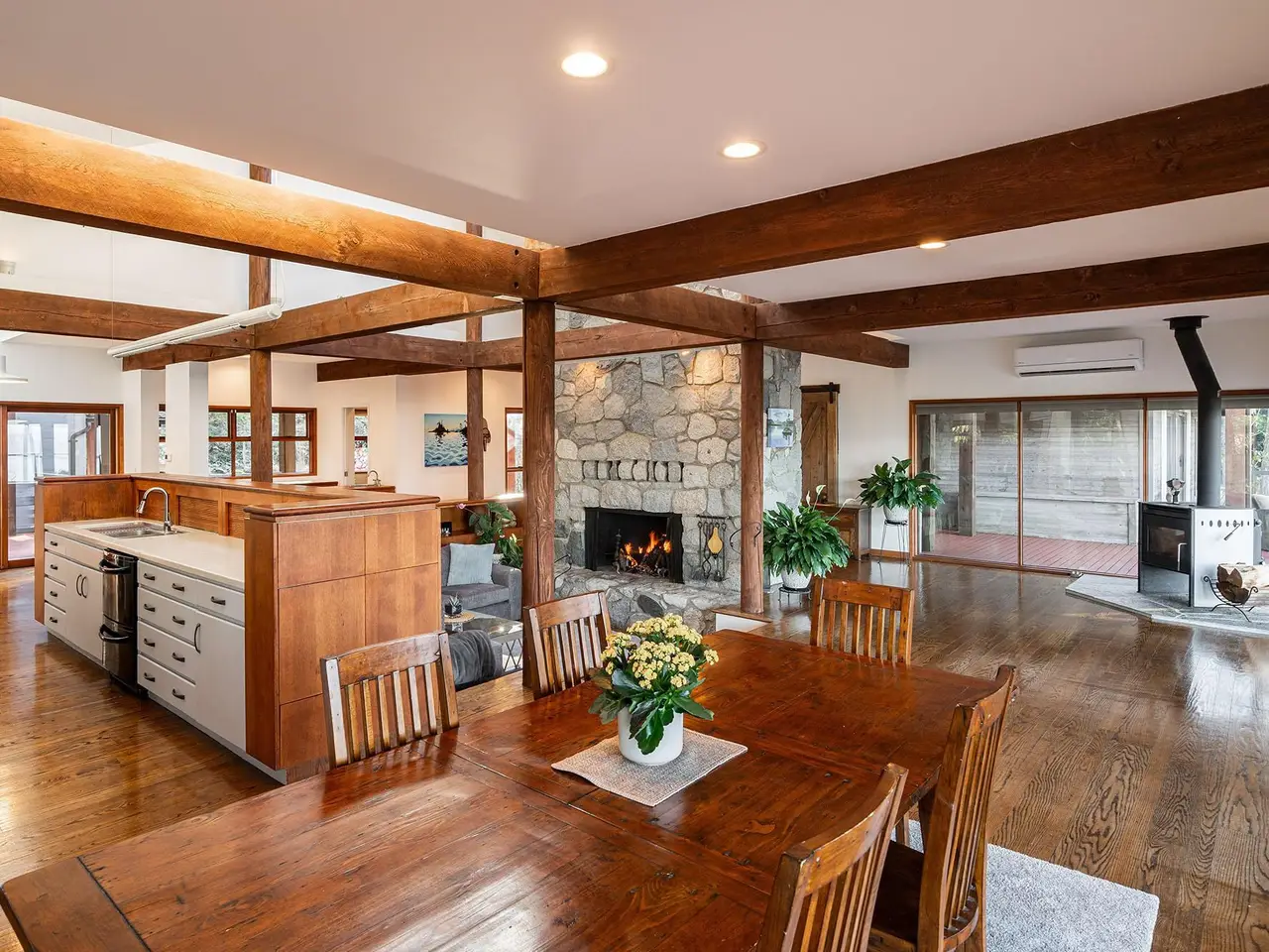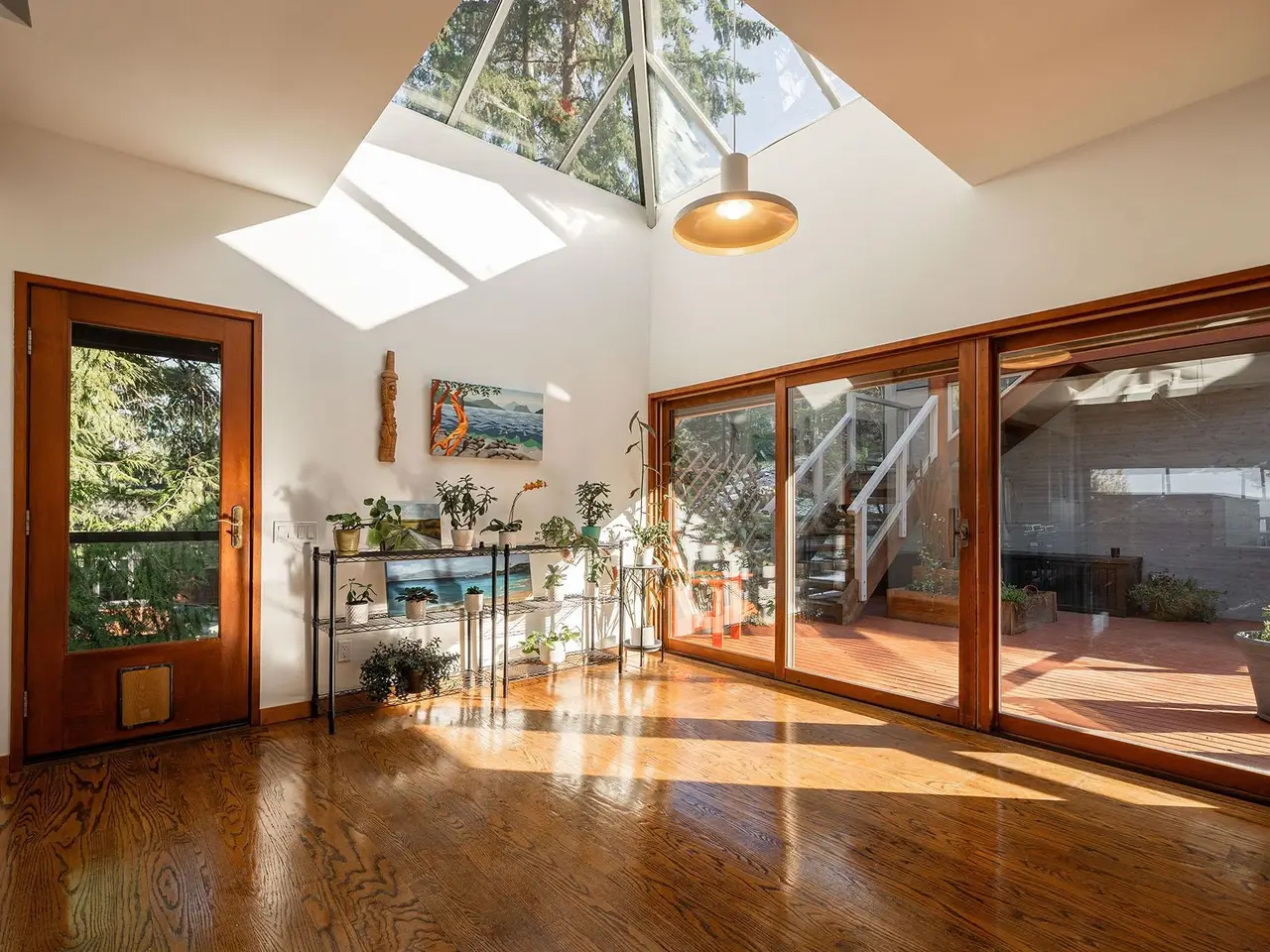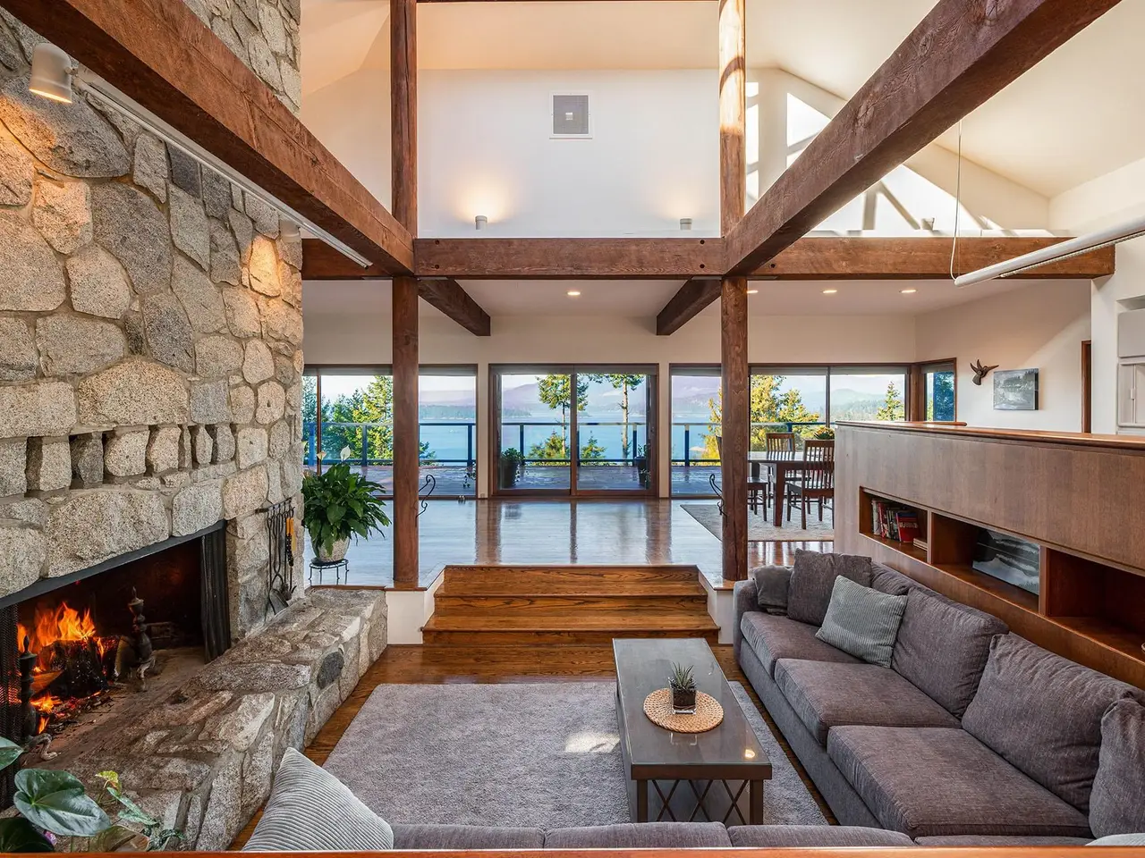 Dreaming of the West Coast Modern lifestyle, and on an island? Here it is. From the dramatic architectural glass atrium entry that greets you upon arrival, to the walls of windows that frame the ocean & island views, this one-level home is a beauty. Cozy up in the sunken living room that’s centered around a bold, floor-to-ceiling granite fireplace. Sliding doors open to the wrap-around deck (2,500+ square feet) from the living room, kitchen, & all the bedrooms. Outside, the fenced garden has space for long table dinners among the mature trees & flowering shrubs. The 600+ square feet guest suite above the garage can accommodate visiting family and friends, or continue it as a 5-star B&B. Long summer days and late sunsets are just around the corner. Come experience this special property – you won’t want to leave.