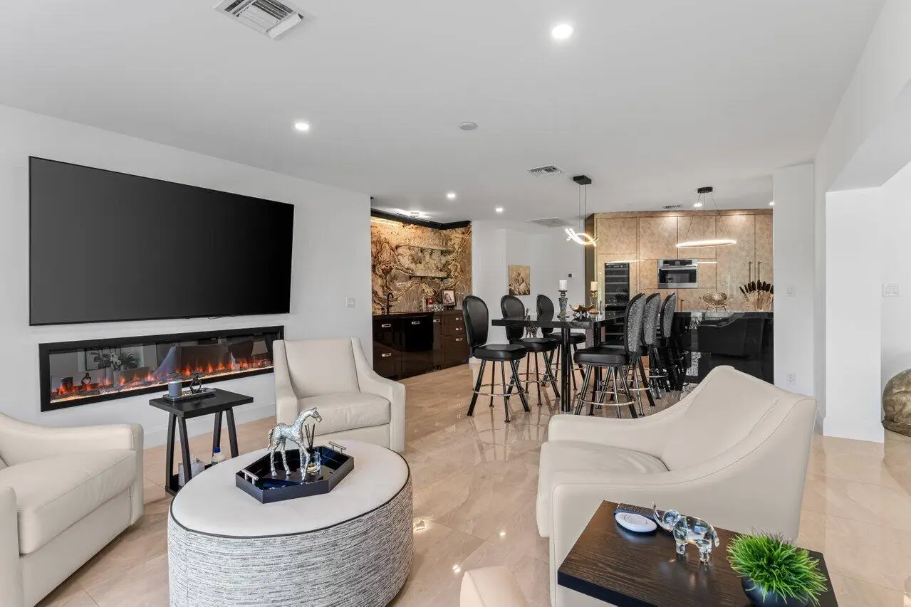 This rarely available 5BR Delray Dunes Golf & Country Club home is a must-see! Overlooking the 6th fairway with views of the 6th green , Completely rebuilt residence is model-ready with top-tier finishes. The reimagined kitchen features Italian cabinetry and appliances, wine fridge, expansive quartz countertops, and a wet bar with ice maker. Upgrades include new bathrooms, porcelain tile flooring throughout, new roof, completely impact, and a private spool. Sophisticatedly staged with custom furniture. As a member of Delray Dunes enjoy a newly renovated 18-hole Pete Dye golf course, Clubhouse, Fitness center, a stunning new pool with bar, expanded outdoor dining, and two illuminated tennis courts. Sellers are open to negotiating the conveyance of all furnishings.