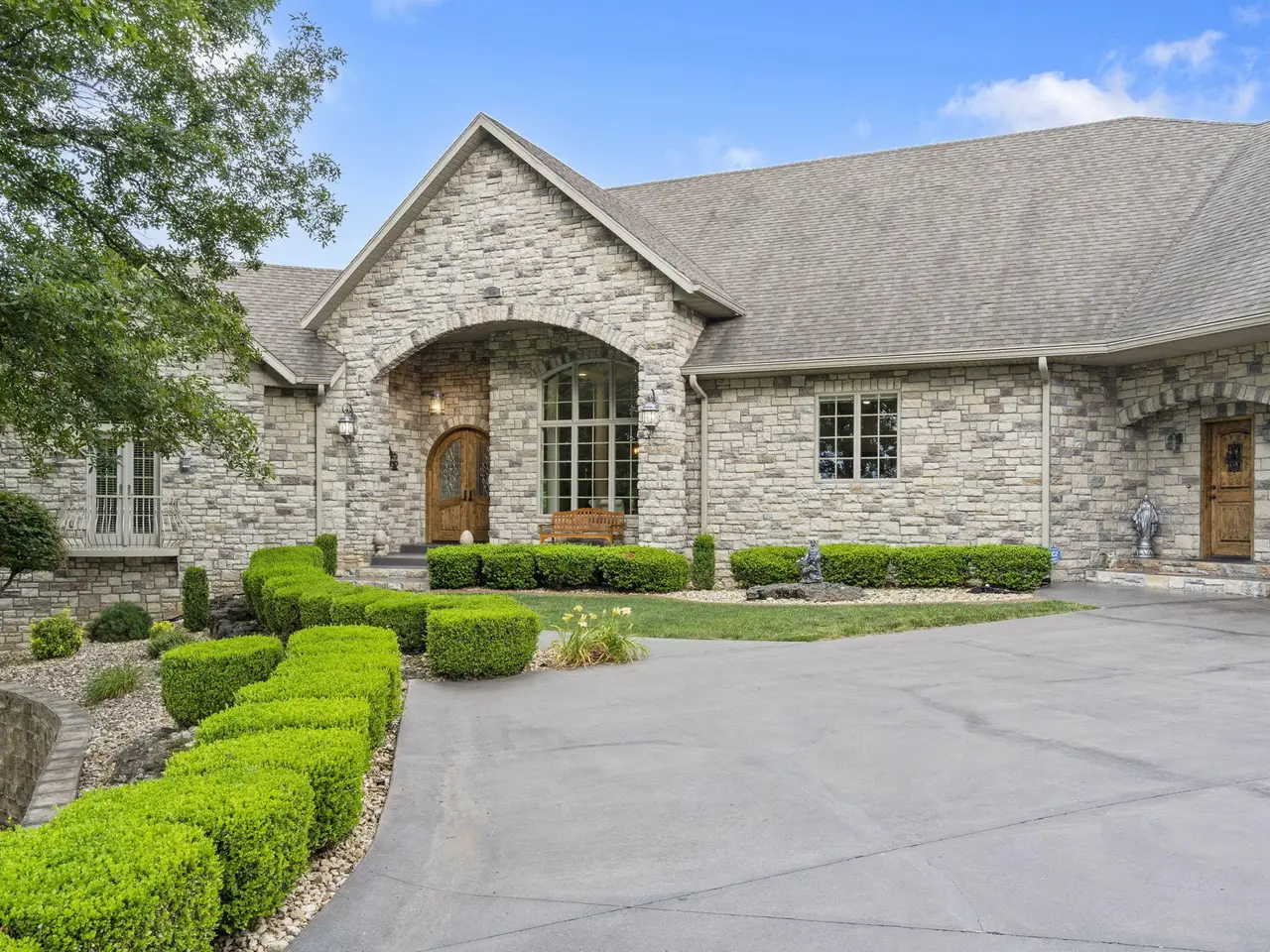 Reduced $276,400 under current appraisal for fast sale! Stunning Custom-Built Home! Golf-Front, Gated Community. Over 10,000 sq. ft. with 6 bedrooms, 7 bathrooms, 14 ft. ceilings, abundant windows to enhance the natural lighting and approx. 1 acre of pristine land. Custom cabinetry, granite countertops, an extra-large bar that opens to the hearth room and beautiful teak flooring. The bedrooms and closets are all generously sized. Lots of storage throughout. Extensive outdoor entertaining area with180 degree views of the golf course and covered patios. The lower level features an extra living area, bedrooms, bar, wine room and large shop room with 220v and 30-amp service. Oversized 4 car garage, immaculate landscaping and a 14 ft. tall Christmas tree closet. Located within 12 minutes of Table Rock Lake access and 10 minutes to the Branson Strip. The subdivision has a premier golf course, clubhouse with restaurant and bar, workout facilities, tennis courts, driving range, chipping and putting areas, pools, paved walking trails around Fox Lake with others throughout the subdivision. Reduced $275,000. for fast sale. Must See! Won't Last.