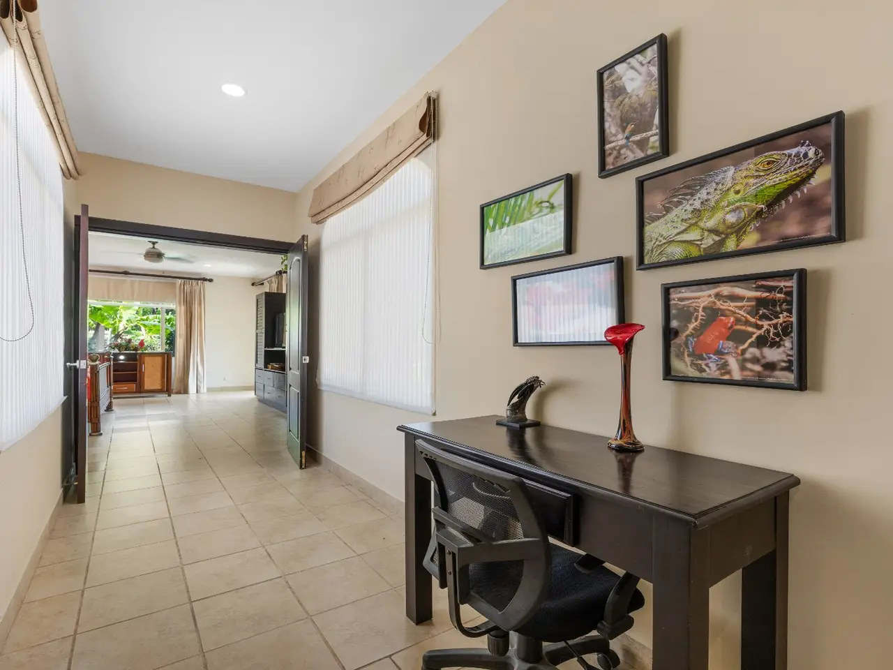 Exquisite Estate in Catalina Cove – Walk to the Beach, Live the Dream Welcome to Casa La Salle, a breathtaking private estate located in the gated community of Catalina Cove, just a short walk to the golden sands of Brasilito Beach and minutes from Playa Conchal. Spanning over 7,000 sq ft in the main residence and complemented by a 600 sq ft guest house, this 5-bedroom, 5.5-bathroom tropical retreat is set on a lush 5,451 m² (1.35-acre) fully fenced lot with impeccable landscaping, privacy, and space to entertain on a grand scale. From the moment you enter the estate through the long palm-lined driveway, you're greeted by elegant Mediterranean-inspired architecture, a resort-style pool with a cascading stone waterfall, a large jacuzzi, sun deck, outdoor kitchen, and tranquil fountain courtyard—all surrounded by mature palms and tropical gardens. Designed for relaxed luxury and effortless entertaining, the main living area features soaring vaulted ceilings, ample seating for large groups, and a seamless indoor-outdoor flow. The expansive chef’s kitchen is the heart of the home, complete with granite countertops, stainless steel appliances, custom hardwood cabinetry and a large center island perfect for gathering. Adjacent to the kitchen, a dedicated bar and lounge area opens to an oversized covered terrace and resort-style BBQ rancho—ideal for outdoor dining, poolside cocktails, or hosting family and friends in style. The main residence includes four spacious bedrooms, each with large windows and generous built-in closets. Two luxurious primary suites open directly onto the pool terrace and offer private covered sitting areas, spa-inspired bathrooms, and serene office nooks—providing the ultimate sanctuary for rest, productivity, and retreat. The 2 guest bedrooms offer king beds with en suite bathrooms. The independent guest house offers a full bedroom, bath, kitchen, and living space—ideal for visitors, caretakers, or rental income potential. Property Highlights: • 4 king beds & 1 bed | 5.5 baths across two homes with spacious social areas • Resort-style pool + jacuzzi with waterfall feature • Outdoor kitchen and BBQ area ideal for entertaining or hosting events • Multiple covered outdoor terraces for lounging, dining, and entertaining • Manicured landscaping, tropical palms, and decorative fountains • Secure, walled property with automatic gate and ample parking • Walk to the beach, shops, and restaurants • Located minutes from Playa Brasilito, Playa Conchal, Playa Flamingo, Tamarindo, Playa Grande, and the new Marina Flamingo • Close to top-rated international schools (La Paz and CRIA), shopping, and surf beaches • High-speed fiber optic internet • 2 car garage, and 2 storage rooms • Fully furnished and turnkey ready Whether you're looking for a luxurious full-time residence, a multi-generational family retreat, or an income-generating property in a prime beachside location, this Catalina Cove estate offers it all. Schedule your private showing today and experience the best of coastal luxury living in Guanacaste, Costa Rica.