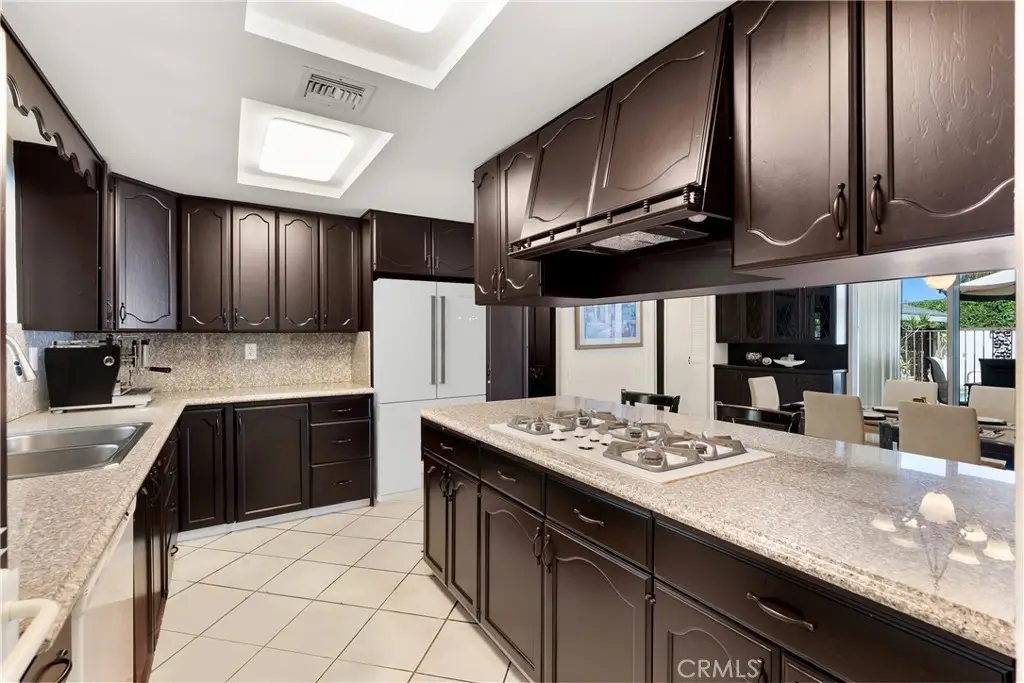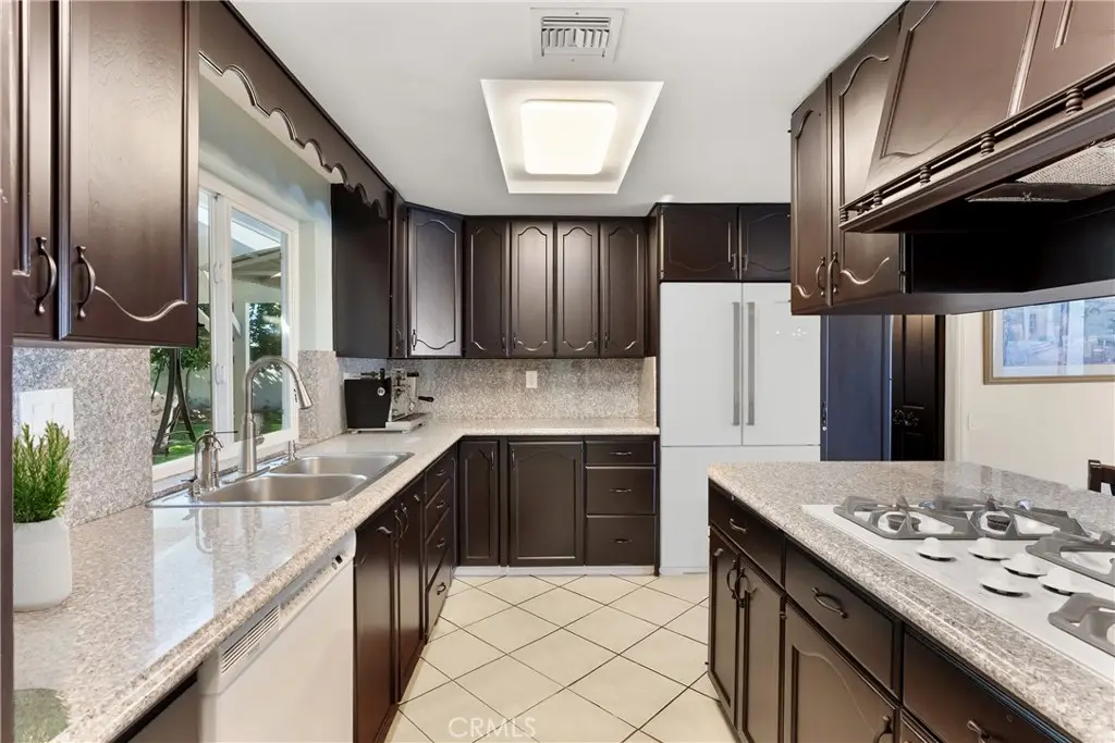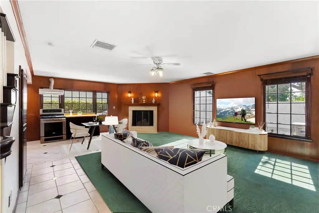 This spacious and versatile residence offering 6 bedrooms, 4 bathrooms, and 3718 sq ft of living space on an expansive 10988 sq ft lot. Perfectly designed for multi-generational living this home combines comfort, privacy, and entertainment in one of Brea's highly desired neighborhoods. With 4 downstairs bedrooms and 2 bedrooms upstairs, a portion of the property could be used for rental income, making it an ideal setup for generating extra revenue or accommodating extended family. Additionally, there's a separate office with a private entrance, perfect for remote work. From the moment you arrive, you'll be captivated by the beautifully landscaped front yard, with stunning brickwork and enclosed by a block wall for added privacy. The gated pool area is an ideal spot for enjoying sunny days. A two-car garage provides convenient side-door access to the covered front walkway, leading to the welcoming front double-door entry. Inside, the floor plan offers vaulted ceilings in the living room, highlighted by a cozy fireplace that sets the tone for relaxing evenings. Adjacent is a spacious formal dining area with French doors to the backyard, creating a seamless indoor-outdoor flow for entertaining. The kitchen offers a gas range, breakfast bar seating, and abundance of natural light, complemented by an additional dining area featuring a chandelier and French doors opening to the front courtyard with views of the pool. Downstairs also includes an oversized laundry room with built-in cabinetry, countertop space, and a sink for convenience. The main level hosts a full primary suite with an ensuite bathroom, as well as three additional bedrooms and a full bath. One of the standout features is the secondary unit within the home constructed in 1980, which offers excellent potential for rental income. Accessible through the main level or side gate with a separate entrance, this private space includes a living room with fireplace, kitchen, half bath downstairs, and direct access to the backyard ideal for guests, or generating rental revenue. Upstairs in this unit, you'll find a full bathroom and two bedrooms. The backyard is equally inviting, with a covered patio, grassy play area, and a large patio space perfect for gatherings. Fruit trees, including pomegranate, avocado, lemon, fig, guava, and mango, seasonal harvests. A storage shed adds even more functionality. With generous space, pool, income potential, and a prime location, this home has it all.
