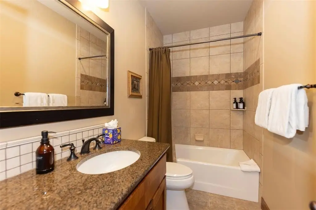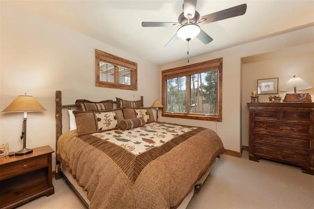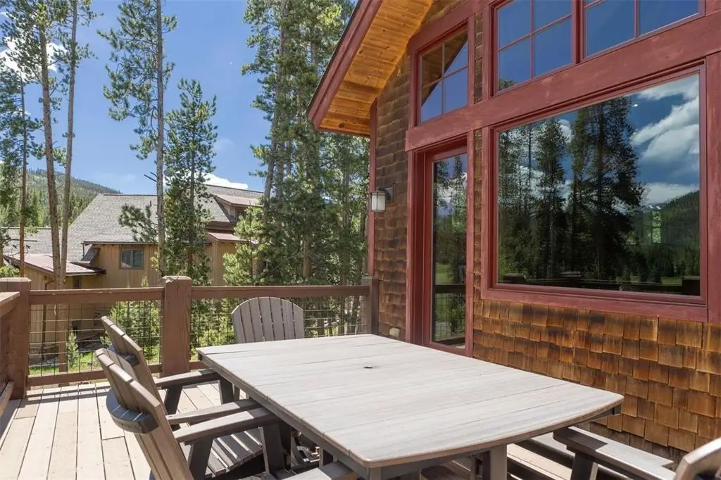 This classic mountain home is set low off Highlands Drive, nestled among protected trees and offering a rare combination of easterly mountain views and frontage along the iconic Jack Nicklaus–designed Breckenridge Golf Course. Overlooking holes 3 and 4 of the Beaver Course, the setting is private, picturesque, and serene. Inside, iron, stone, and wood elements create a bold first impression. Walnut floors span the main level, where a vaulted great room centers around a gas fireplace and expansive windows that bring the outdoors in. The layout flows easily into the dining area and well-equipped kitchen, featuring a gas range, custom hood, dishwasher, prep sink in the island, and a second sink by the window that perfectly frames the mountain scenery. Just off the kitchen, a covered deck is perfect for year-round use. The primary suite spans its own floor, complete with a private balcony, gas fireplace, office nook, walk-in closet, and a spacious bath with jetted tub, steam shower, and double vanity. The lower level is designed for comfort and entertaining, featuring a spacious family room where a wet bar with beverage fridge complements the cozy gathering space. Three additional bedrooms are located on this level—including two bedroom suites and a bunk room. Just outside, a private patio with a hot tub invites you to unwind and take in the peaceful alpine surroundings amidst the golf course.