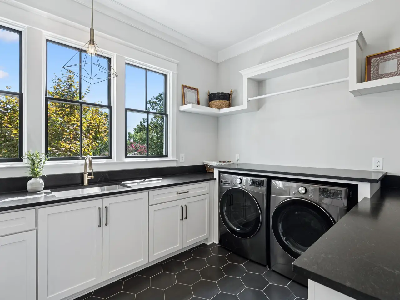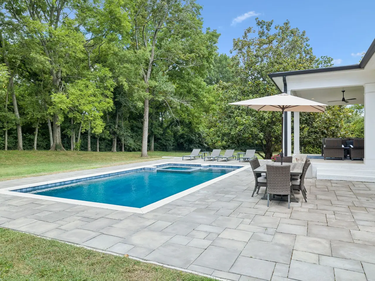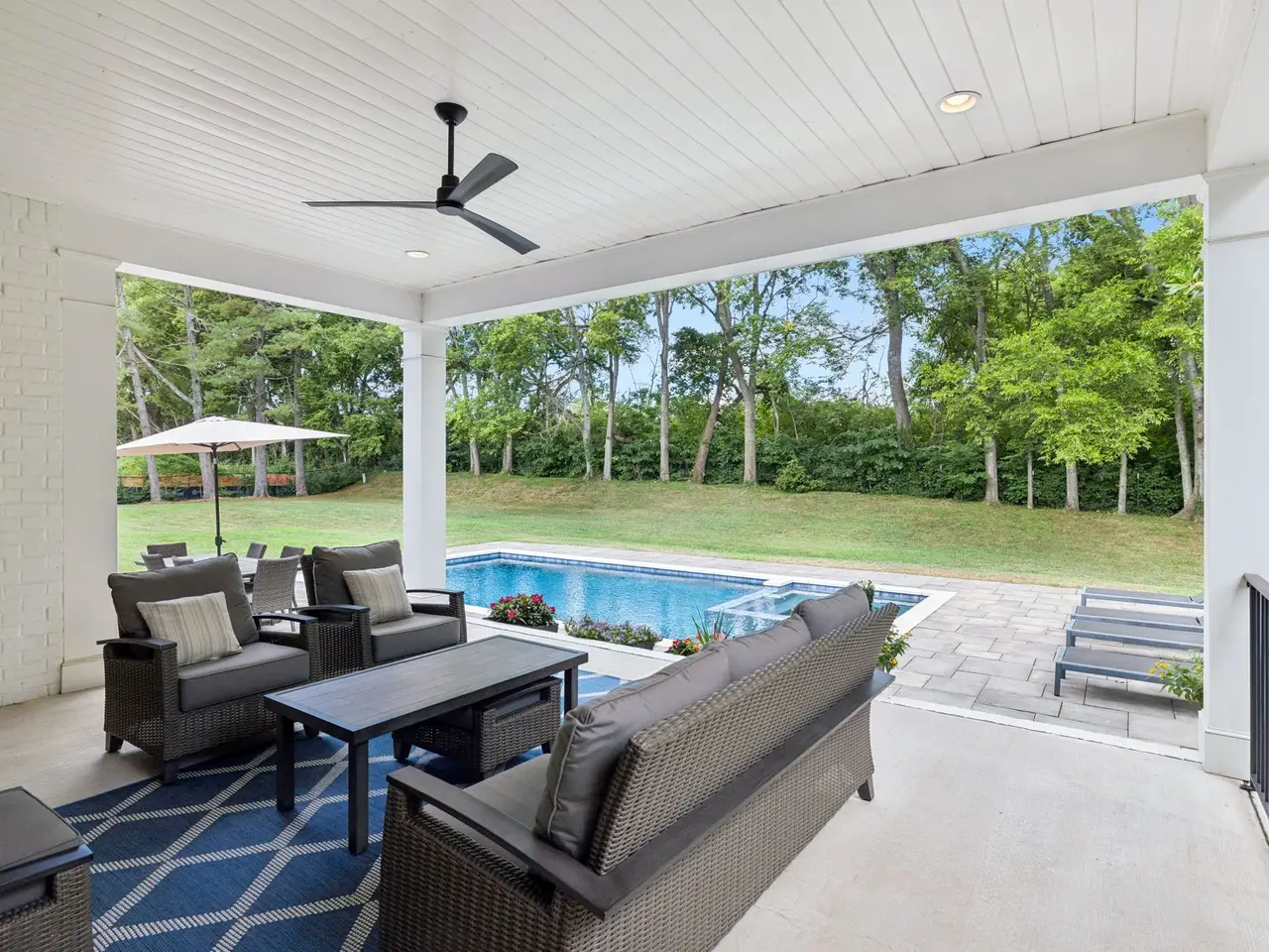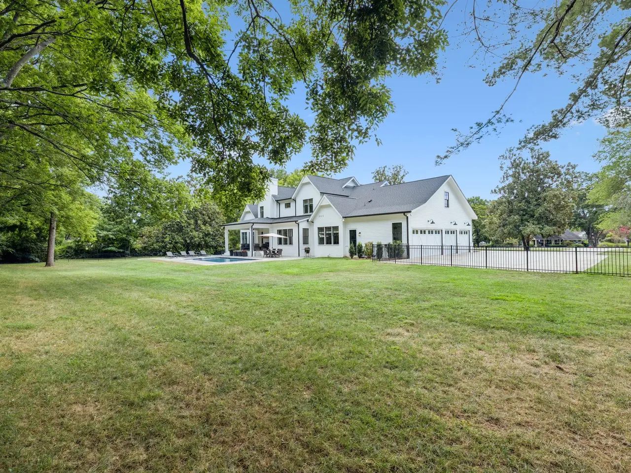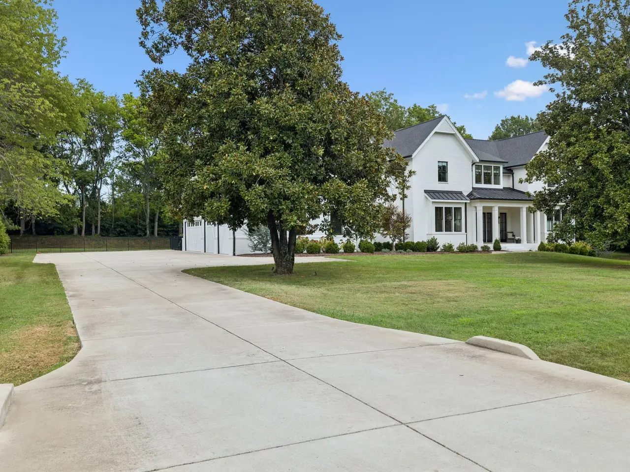 Luxury, comfort, and convenience meet at 5116 Williamsburg Rd in the sought-after Meadowlake community of Brentwood. From the moment you arrive, the beautiful white brick exterior, welcoming covered front porch, and inviting entry foyer set the tone for the elegance inside. Just off the foyer, the formal dining room features a shiplap accent wall, creating a seamless connection to the home's timeless design details. The heart of the home is the gourmet kitchen, boasting top-of-the-line appliances, ceiling-height cabinetry, a large center island, quartz countertops, a hidden walk-in pantry, and a spacious breakfast nook with a continued shiplap accent wall. The adjoining living room offers a cozy fireplace framed by wooden beams, custom built-in shelving, and dual French doors that open to the covered back porch--perfect for indoor-outdoor living. The main-level primary suite is a private retreat, showcasing a vaulted shiplap ceiling, bay window seating area, and a spa-inspired bath with a stand-alone soaking tub, double vanities, a dedicated makeup station, built-in tile bench in the shower, and a walk-in closet with custom storage. A guest suite on the main floor provides ideal accommodation for visitors. Additional thoughtful touches include a drop-zone with hooks and a bench, and a large laundry/utility room with generous counter space, hanging rods, and even a desk work area. Upstairs, you'll find a dedicated office or creative space, a spacious bonus room with a wet bar and beverage center, three more bedrooms, two full baths, and abundant unfinished storage space--offering room for future expansion. Step outside to your private one-acre, fenced backyard oasis, complete with a covered porch featuring a fireplace, a sparkling heated saltwater pool, and an integrated spa -- all backed by mature trees for privacy. Zoned for Williamson County's award-winning schools and ideally located near shopping, dining, and I-65, this home offers the ultimate living experience.