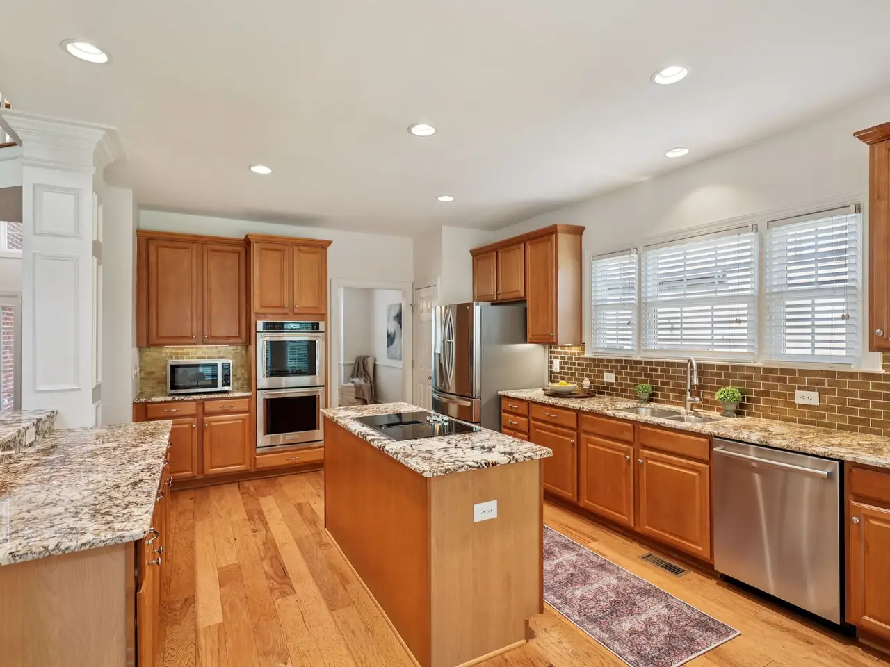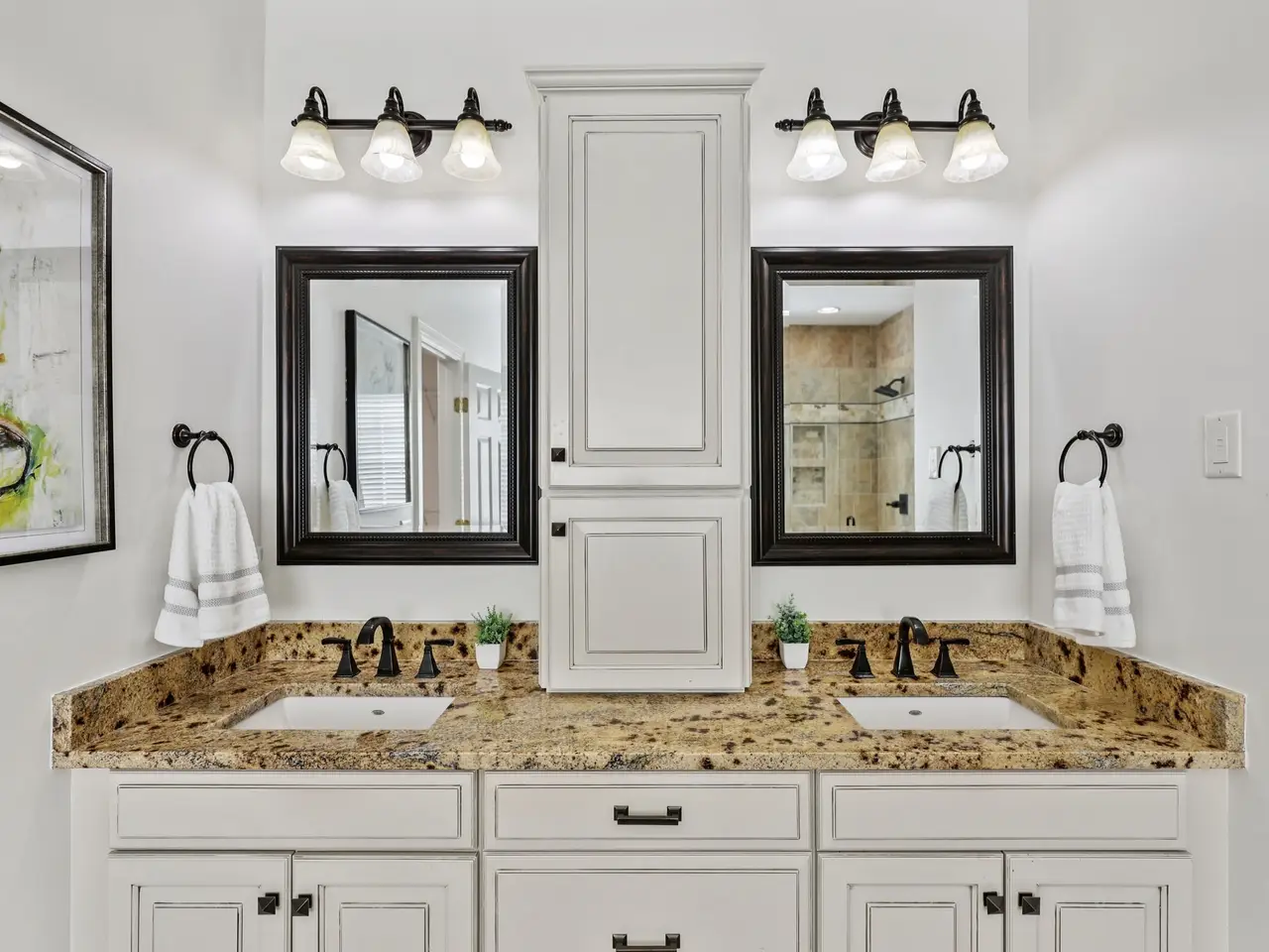 Inside, you'll find soaring ceilings, fresh interior paint, and gorgeous new floors throughout the main level. The kitchen has been completely transformed with new countertops, backsplash, dual oven and microwave, upgraded range, under-cabinet lighting, and added power above cabinets for accent lighting. All bathrooms feature updated countertops, cabinetry, mirrors, and lighting, while the primary bath showcases a refreshed shower. Every detail has been attended to--from a new security alarm system, carbon monoxide sensors, rear door, and exterior seals, to new fireplace gas logs, gutters, chimney cap, HVAC systems up and down, hot water heater, and energy-efficient windows and wrap. Outside, enjoy lush, professionally designed landscaping enhanced by a 10-zone sprinkler system, buried downspouts, clean and sealed driveway and sidewalks, and outdoor deck speaker wiring--perfect for entertaining. Additional features include a potential 5th bedroom that is currently unfinished, whole-home water filtration and ionization system, and a fully waterproofed crawl space with dehumidifier for peace of mind. This home blends modern upgrades with Brentwood charm--move-in ready and meticulously maintained inside and out.