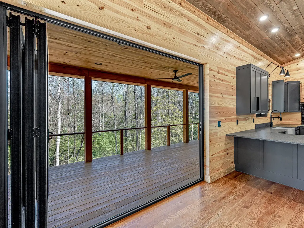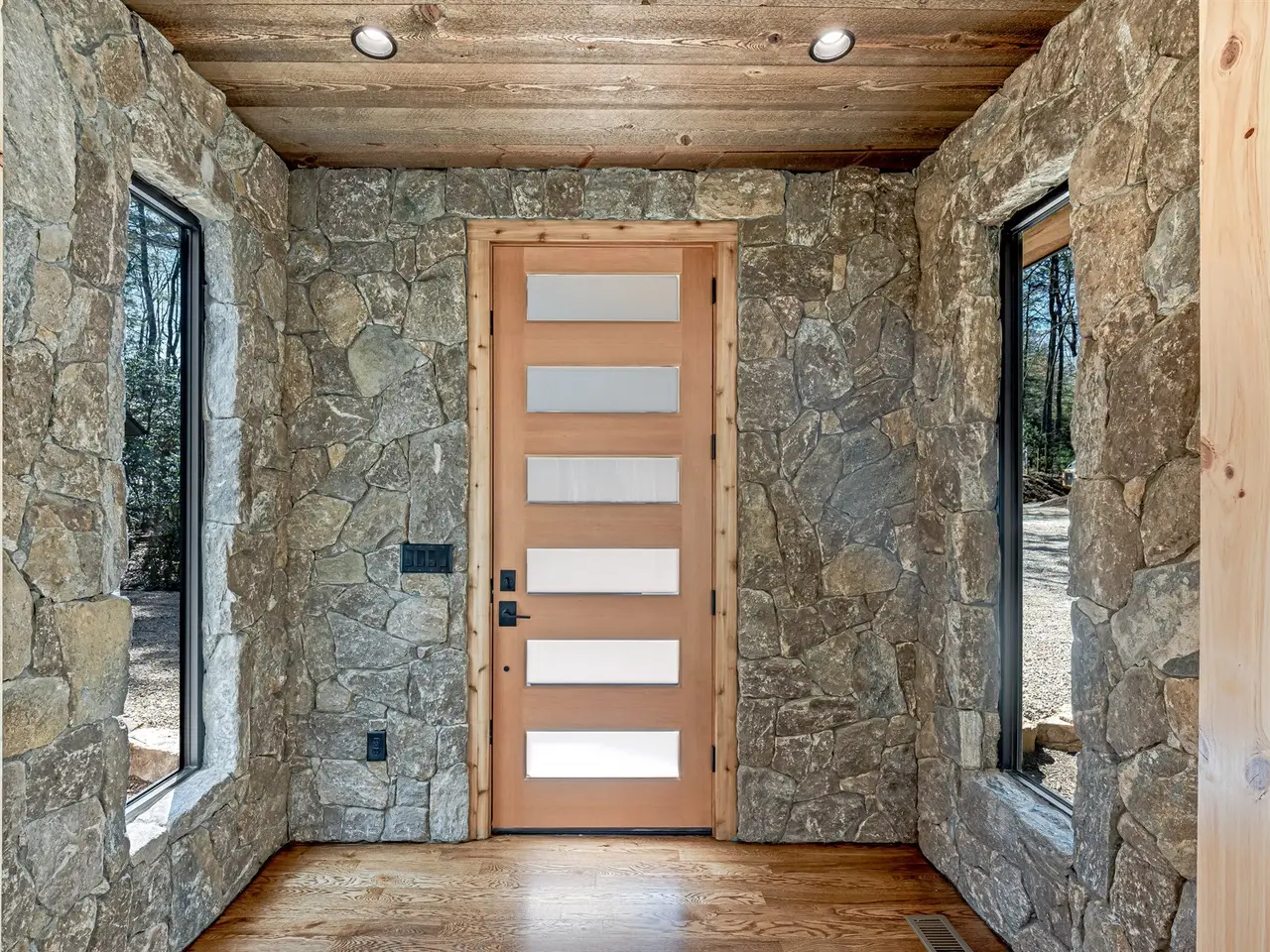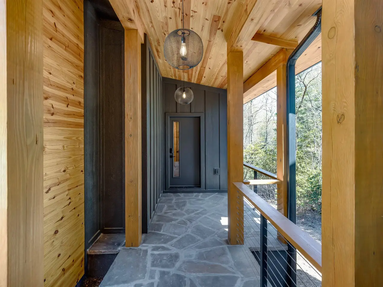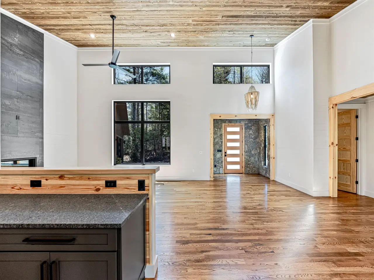 Welcome to this custom-built gem by Joe Bryson Construction, one of Brevard's top builders. This stunning single-level home greets you with a grand rock entry and a charming stone breezeway that connects the detached two-car garage to a spacious mudroom. Inside, you'll find soaring wood-clad cathedral ceilings, an open layout, and a striking fireplace with gas logs at the heart of the home. The kitchen is thoughtfully designed, perfect for everyday living or entertaining. Three inviting bedrooms feature custom accent walls, plus there's a bonus room ideal for a home office or gym. Quality craftsmanship shines throughout - from the stacked stone in the entryway to the fine finishes in every room. Bi-folding glass doors open onto a large private deck overlooking a peaceful, wooded setting. A perfect blend of comfort and style!