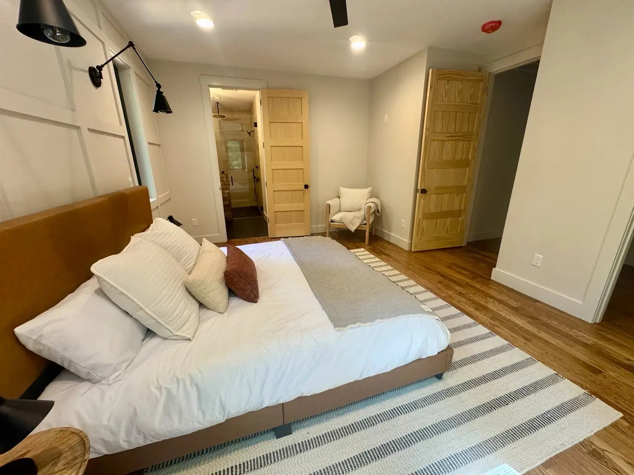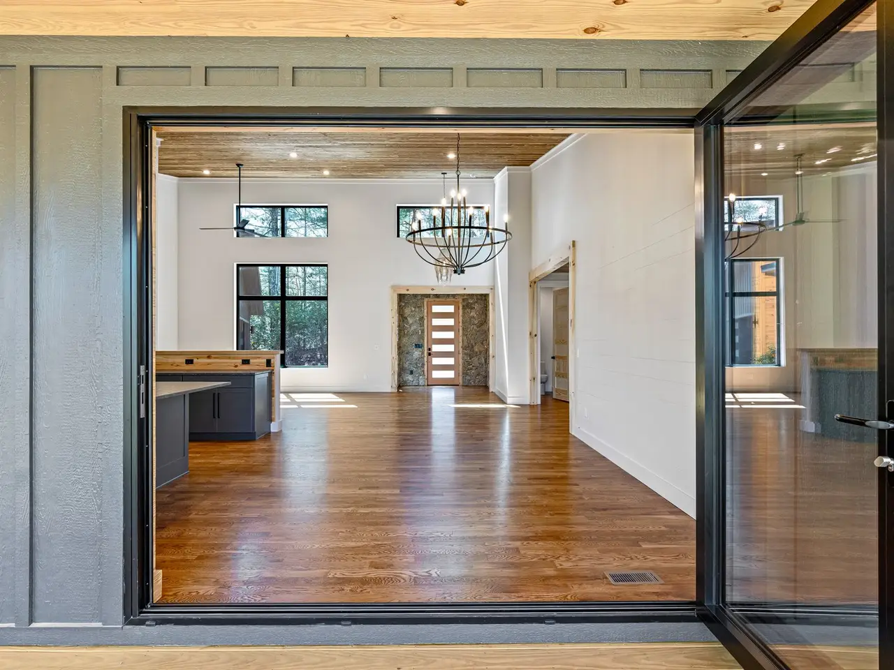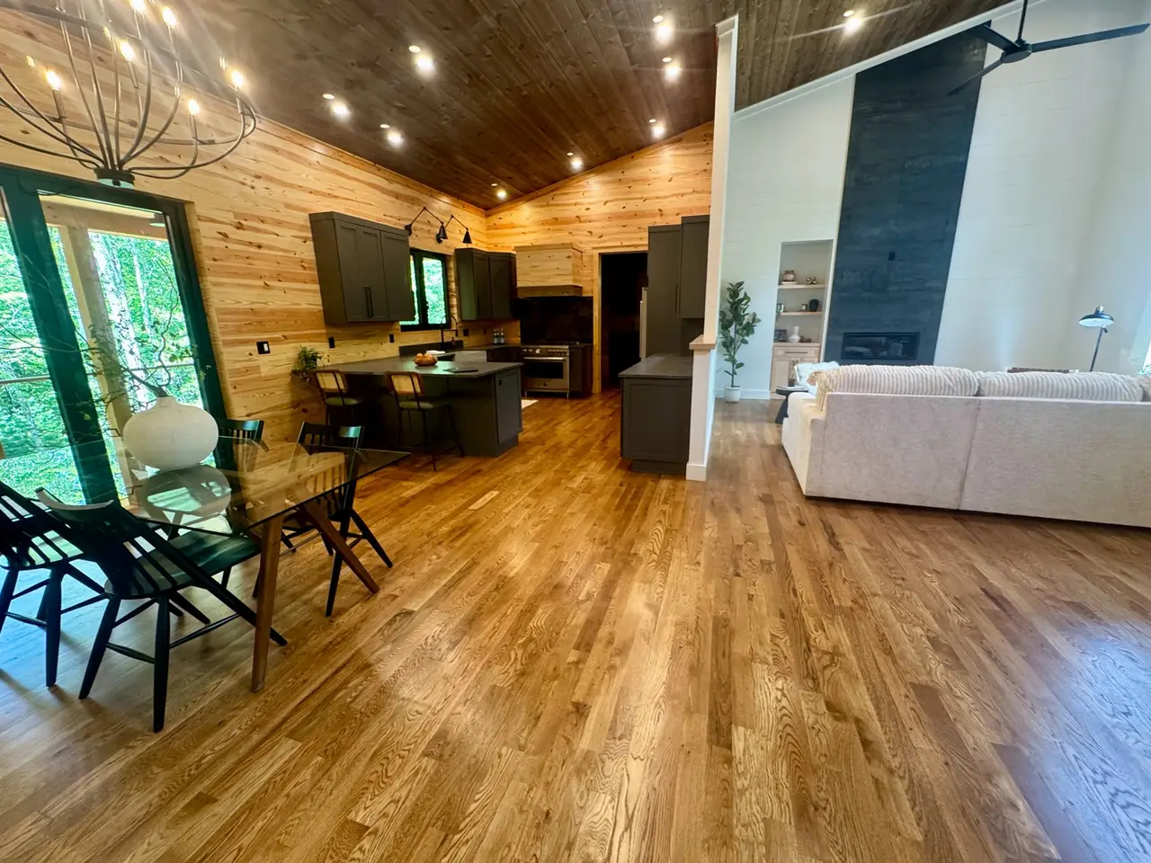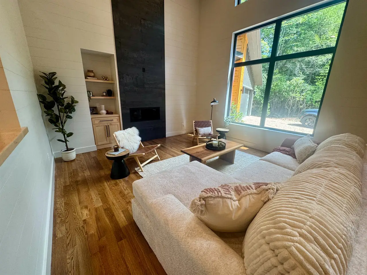 Welcome to this custom-built gem by Joe Bryson Construction, one of Brevard's top builders. This stunning single-level home greets you with a grand rock entry and a charming stone breezeway that connects the detached two-car garage to a spacious mudroom. Inside, you'll find soaring wood-clad cathedral ceilings, an open layout, and a striking fireplace with gas logs at the heart of the home. The kitchen is thoughtfully designed, perfect for everyday living or entertaining. Three inviting bedrooms feature custom accent walls, plus there's a bonus room ideal for a home office or gym. Quality craftsmanship shines throughout - from the stacked stone in the entryway to the fine finishes in every room. Bi-folding glass doors open onto a large private deck overlooking a peaceful, wooded setting. A perfect blend of comfort and style!