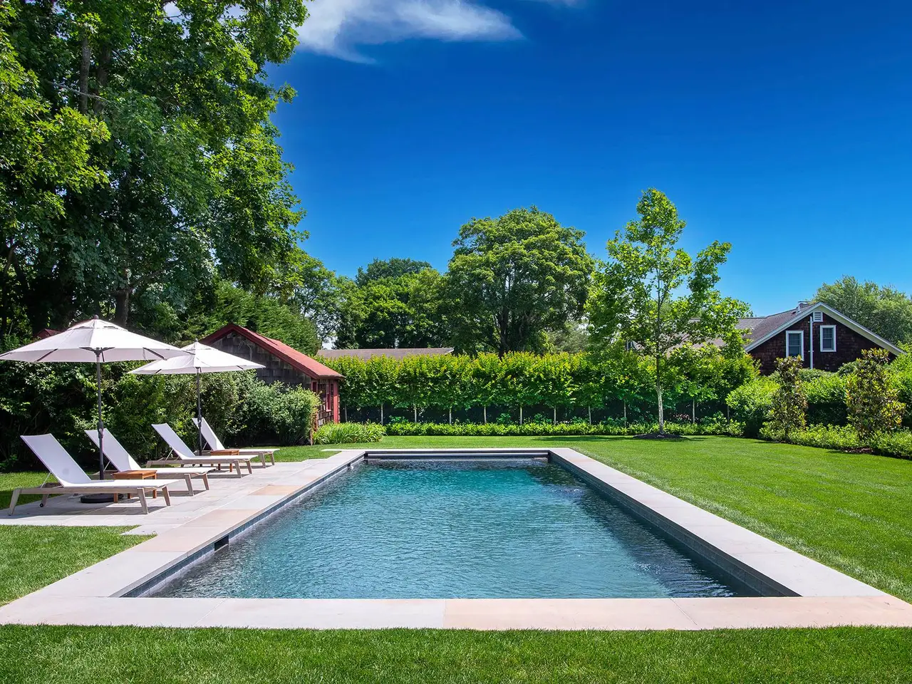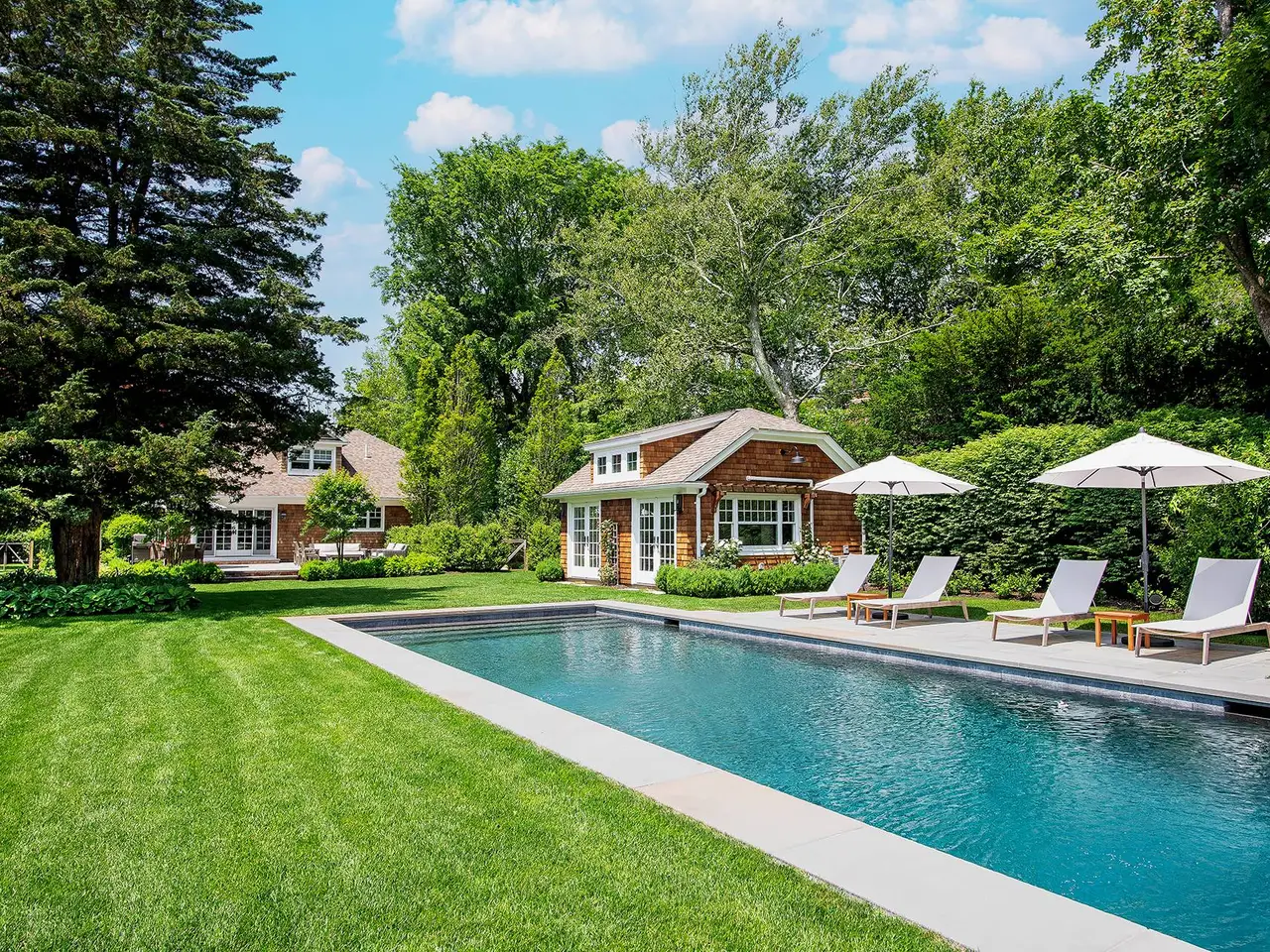Bridgehampton Village beauty available for the first time as a seasonal rental. This cottage was originally built in 1930 and lovingly renovated in 2017/18. The undeniable curb appeal sets the tone with a charming front porch entry which opens to the beautifully appointed and professionally decorated living room with large windows and a wood-burning fireplace. This room opens into an inviting open family room and to the open dining room with doors leading to the new bluestone deck, fenced backyard and stunning pool - all enhanced by landscape lighting and an outdoor sound system. The open, windowed kitchen has quartz counter tops, tons of storage and stainless appliances. A first floor master bedroom (king) with an en-suite bath and a powder room completes the first floor. A gracious stairway leads to the second floor which offers three guest bedrooms and a full marble bath with double vanity. The private backyard offers lovely mature plantings and lush lawns as well as a light-filled, renovated pool house with an entertaining kitchen (two beverage fridges, ice maker and wet bar), a large TV and a built-in desk work area. The 16x45 heated Gunite pool is surrounded by lush landscaping and equipped with an automatic coved to keep heat in. Parking four to six cars. This property is located in historic Bridgehampton and is minutes to Main Street and has countless dining and shopping options. Train, Jitney, wine & grocery stores a five minute drive. Listing ID: 876050