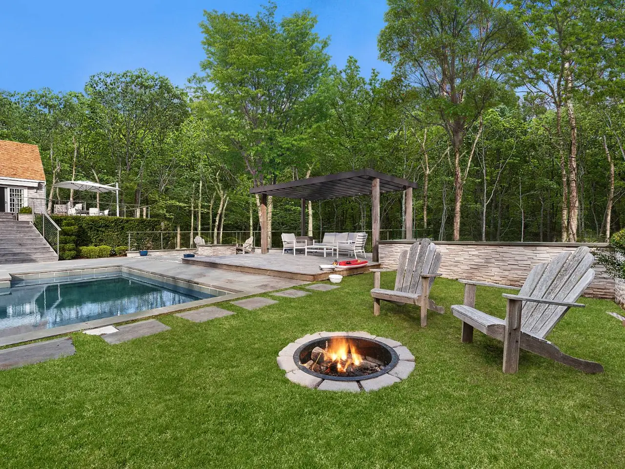 Your own piece of heaven is ideally situated moments to the villages of Bridgehampton and Sag Harbor. Set on 2.13 acres and boasting five bedrooms and 4.5 bathrooms, this home is THE place to enjoy a beautiful summer's day. The outdoor entertaining space is unparalleled, offering a new built in hot-tub, grand outdoor kitchen with Sub-Zero and Wolf appliances, heated gunite pool with a 1,000 square foot pergola, a gas fire-pit, as well as a wood burning one and ample lawn space. The interior is flooded with natural light that flows throughout the open floor plan of the living, dining and eat-in kitchen featuring Wolf and Sub-Zero appliances. The master suite with vaulted ceiling, large walk-in closet and gorgeous bath feels like a hotel suite you'll never want to leave. Four additional guest bedrooms ensure there will be room for everyone. The home also offers two separate family rooms, making it ideal for those working from home and needing the separation. This home is a must see!