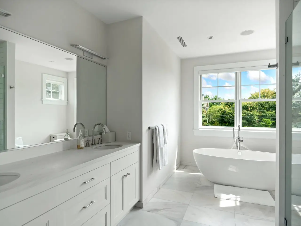 Cathedral ceilings with floor-to-ceiling windows