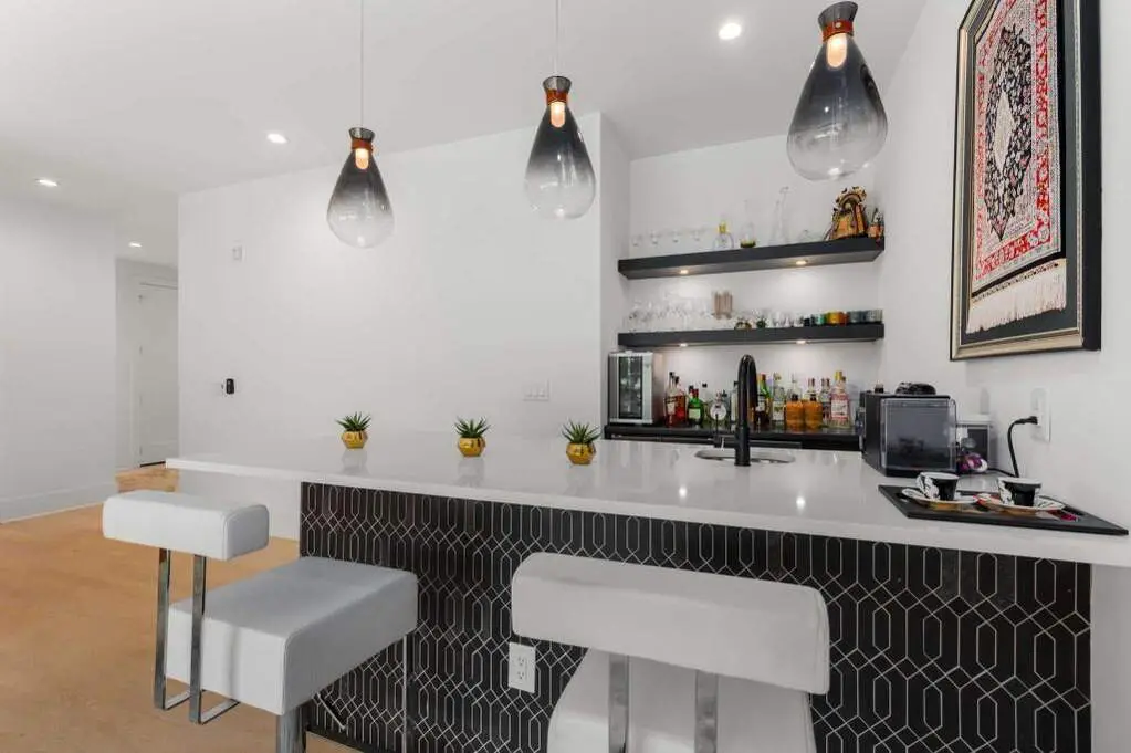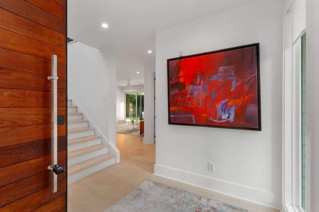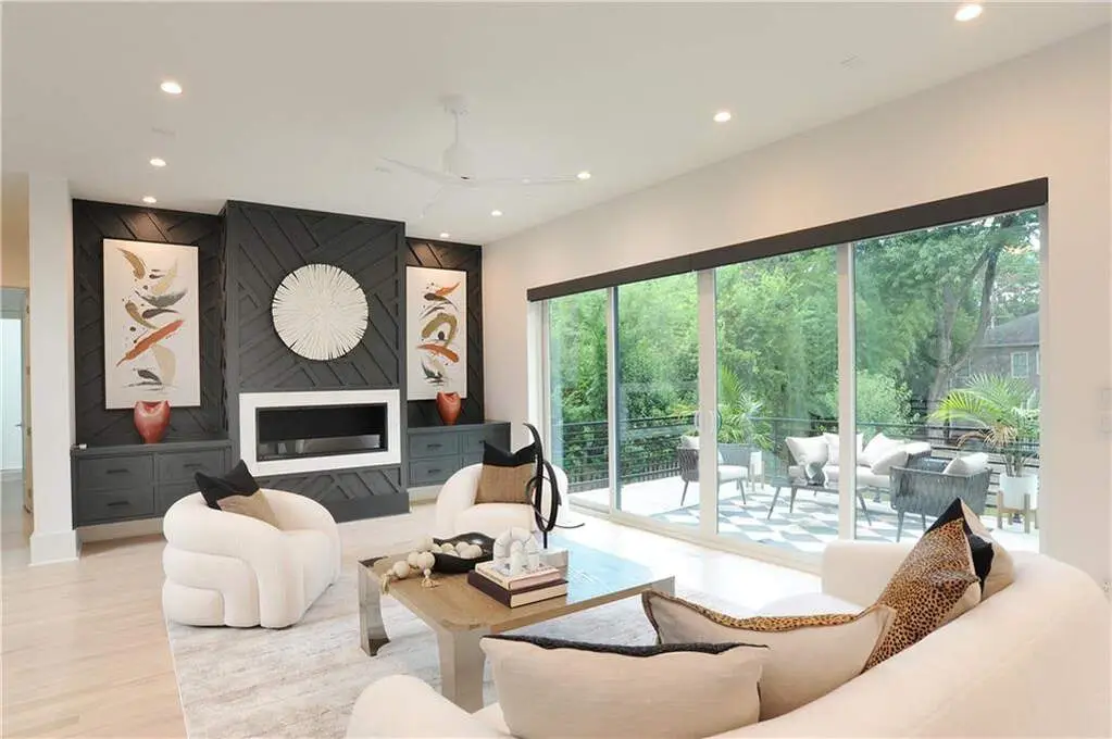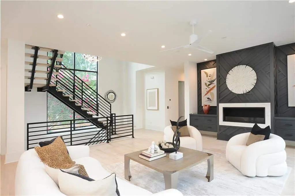 UNSURPASSED CUSTOM-BUILT MODERN DESIGNED BY RENOWNED SOUTH AMERICAN ARCHITECT ANDRES GARCIA, THIS ONE-OF-A-KIND MODERN RESIDENCE BLENDS STRIKING DESIGN WITH EXCEPTIONAL FUNCTIONALITY. A DRAMATIC FLOATING STAIRCASE AND BREATHTAKING THREE-STORY GLASS WINDOW SET THE TONE FOR THE HOME'S SOPHISTICATED, LIGHT-FILLED INTERIOR. THE MAIN FLOOR WELCOMES YOU WITH A GRACIOUS ENTRY FOYER, PRIVATE GUEST BEDROOM WITH FULL BATH, AND A STYLISH FAMILY ROOM OUTFITTED WITH A BUILT-IN WET BAR, WINE, AND BEVERAGE COOLERS. THE SPACE FLOWS SEAMLESSLY TO A COVERED PATIO FEATURING A NEWLY COMPLETED OUTDOOR KITCHEN OVERLOOKING A BEAUTIFULLY FLAT, FENCED AND POOL-READY BACKYARD. THIS LEVEL ALSO INCLUDES AN OVERSIZED TWO-CAR GARAGE WITH GENEROUS STORAGE. UP ONE LEVEL, SOARING CEILINGS HIGHLIGHT AN OPEN-CONCEPT FIRESIDE GREAT ROOM, BANQUET-SIZED DINING AREA WITH BUILT-INS, AND A CHEF'S KITCHEN EQUIPPED WITH STAINLESS STEEL APPLIANCES, AN OVERSIZED QUARTZ ISLAND, AND A WALK-IN PANTRY. EXPANSIVE CUSTOM SLIDING DOORS CONNECT THE GREAT ROOM AND DINING AREA TO A SPACIOUS DECK PERFECT FOR INDOOR/OUTDOOR GATHERINGS. A CHIC POWDER ROOM, DEDICATED OFFICE WITH CLOSET, AND A SECOND GUEST SUITE WITH FULL BATH COMPLETE THIS FLOOR. THE TOP LEVEL IS HOME TO A SPECTACULAR PRIMARY SUITE FEATURING TWO EXPANSIVE WALK-IN CLOSETS AND A LUXURIOUS SPA-INSPIRED BATH. TWO ADDITIONAL ENSUITE BEDROOMS AND A FULL-SIZE LAUNDRY ROOM ROUND OUT THE UPPER FLOOR.