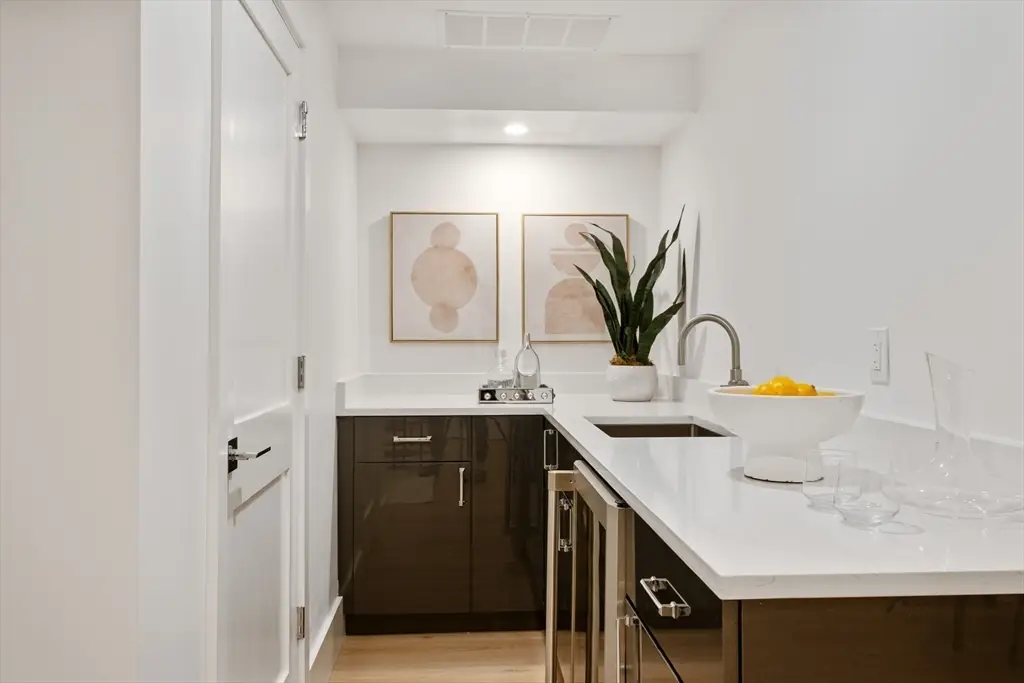 Welcome to this beautifully renovated 2025 Coolidge Corner unit, where timeless charm meets modern comfort. A welcoming mudroom opens to a sunlit kitchen with generous counter space, perfect for cooking together or hosting friends. The cozy family room with fireplace and a cheerful breakfast nook make the main level inviting, while a powder room adds convenience. A graceful curved staircase leads to a reading nook, laundry closet, and a serene primary suite with walk-in closet and ensuite bath featuring a double vanity. A second bedroom with its own ensuite completes this floor. The finished lower level offers flexible space for relaxation and fun with a rec room, wet bar, two bedrooms (one ensuite), and another full bath. Direct walk-out access leads to the patio, backyard and parking area. Move-in ready and filled with natural light, this home is designed for everyday living and entertaining, all just steps from Brookline's cafes, shops, schools, medical facilities and parks.