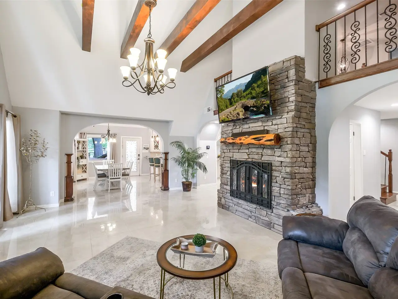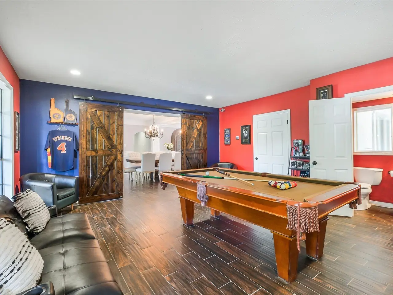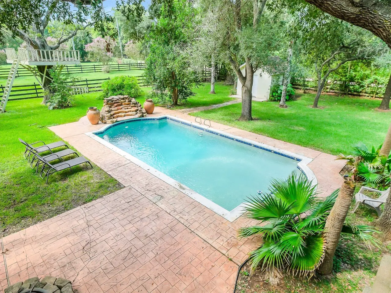 This stunning property in Brookshire, Texas, spans 4.37 acres with a spacious 7,800 square foot home featuring SIX BEDROOMS, four full baths and 2 half baths. The fully fenced estate boasts a gated entrance and a generous double-wide driveway. Highlights include a gazebo, a GUEST HOUSE, and a two-story barn with 10 STABLES with lodging areas for horses and also a CORRAL. Enjoy the serenity of a man-made pond where you can fish for Bass and Catfish, a pool house with two dressing rooms, and a gorgeous pool with delightful water features. In the home, there is a GAMES ROOM and dedicated HOME THEATER. There is plenty of parking and a five-car garage. The acreage offers so many opportunities; the home is 40 minutes from downtown Houston, less than five minutes from the I-10 but with the serenity that living surrounded by green fields and nature brings. There is also ample space for entertaining - this exceptional property is a must-see. Don't miss your chance to explore it!