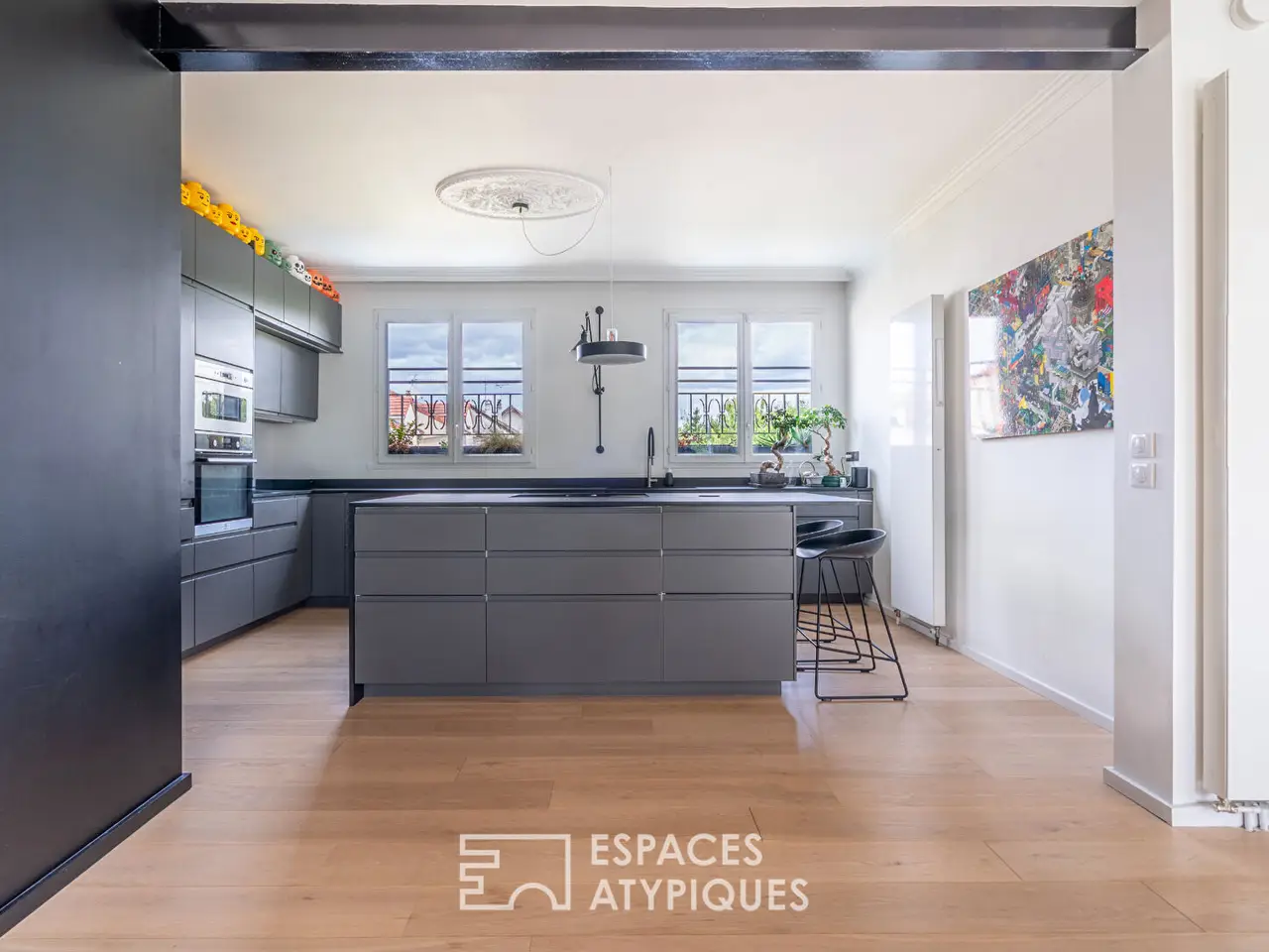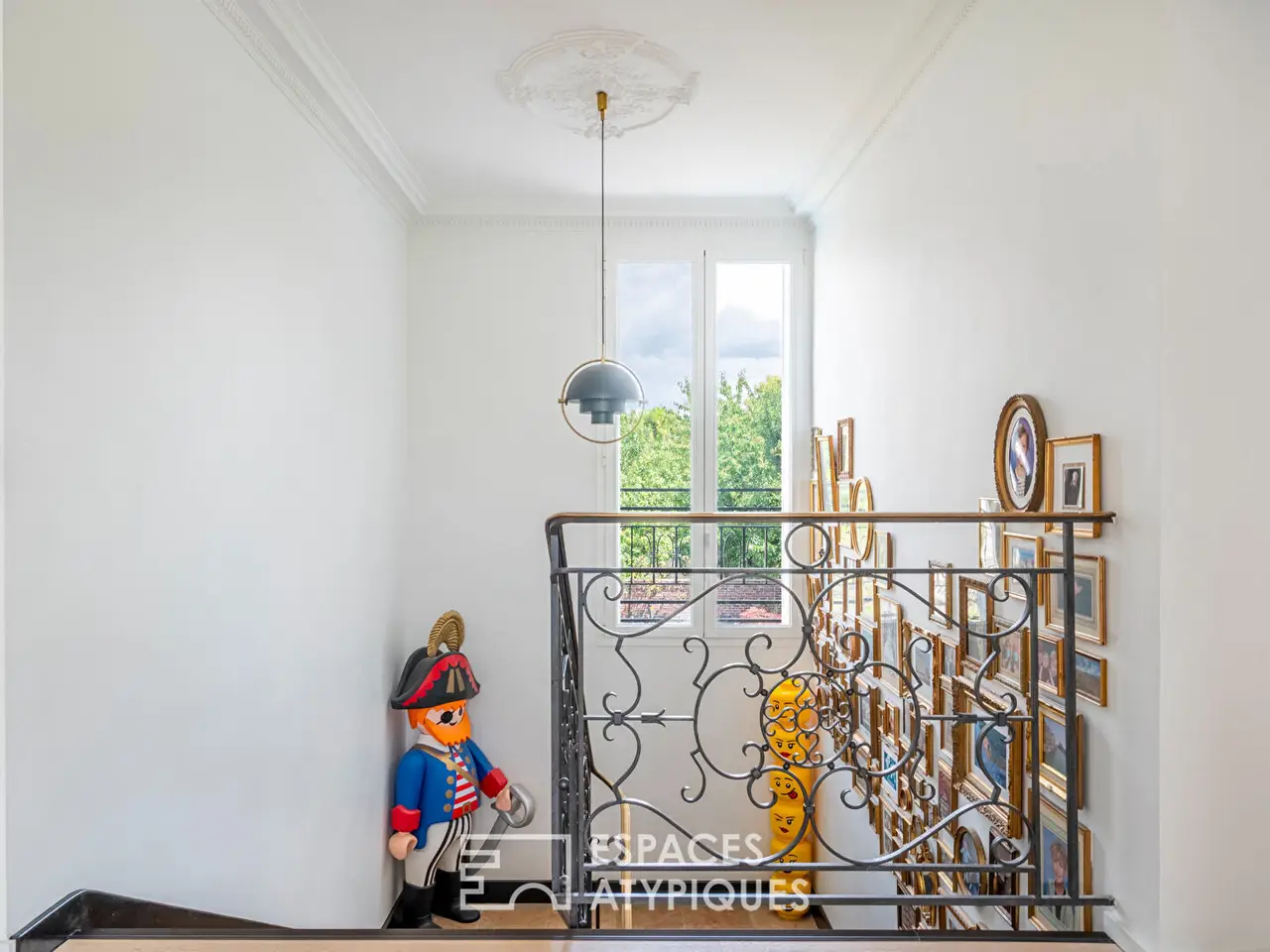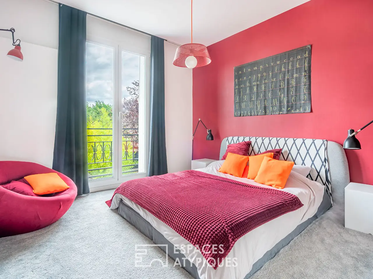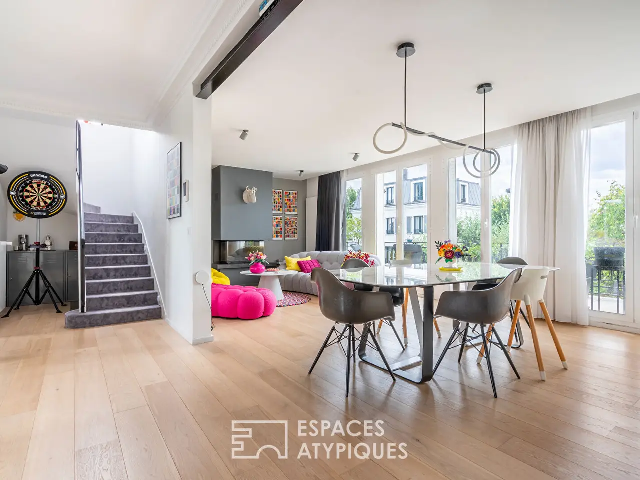 Located in the sought-after Pepiniere district, a stone's throw from the banks of the Marne, this house, built in 1969 and completely renovated in 2021, offers 305 sqm of living space on a 480 sqm plot. The heart of the house, the first floor captivates with a spectacular 75 sqm living room. Bathed in light thanks to its large bay windows, it is organized around a convivial kitchen, a dining room, and two living rooms, one of which features a gas fireplace. The whole opens onto a 20 sqm south-facing balcony, which further extends the already remarkable volumes. The ground floor sets the tone from the entrance, with a majestic hall of nearly 30 sqm, clad in marble and leading to an iron staircase adorned with gilding. This level opens first onto an office and then a dressing room, immediately revealing the generosity and multiplicity of spaces. A room currently converted into a games room with a toilet can easily be transformed into a bedroom opening directly onto the terrace. Finally, a summer kitchen used as a laundry room, also open to the exterior, completes this floor. An 18 sqm garage, suitable for a family vehicle and complemented by numerous storage spaces, completes this level. On the second floor, two bedrooms each have their own bathroom. A master suite, equipped with a dressing room and a bathroom with a bathtub and shower, offers an intimate and refined space. A separate toilet completes this level, while an attic of approximately 80 sqm offers additional development potential. The interior design, resolutely modern, gives each space a unique identity, the result of a renovation carried out with taste and rigor. Outside, a 400 sqm garden provides an ideal green setting for family life, just a few steps from the iconic promenades along the banks of the Marne. This house with its rare volumes, combining modern comfort, brightness and strong character, is an exceptional family home in one of the most sought-after areas of Bry-sur-Marne. Banks of the Marne: 2 minutes on foot School: 5 minutes on foot RER A Bry-sur-Marne: 15 minutes on foot REF. 12491 Additional information * 9 rooms * 4 bedrooms * 3 bathrooms * Outdoor space : 480 SQM * Parking : 2 parking spaces * Property tax : 4 406 € Energy Performance Certificate Primary energy consumption b : 98 kWh/m2.year High performance housing