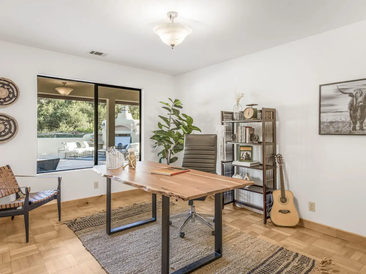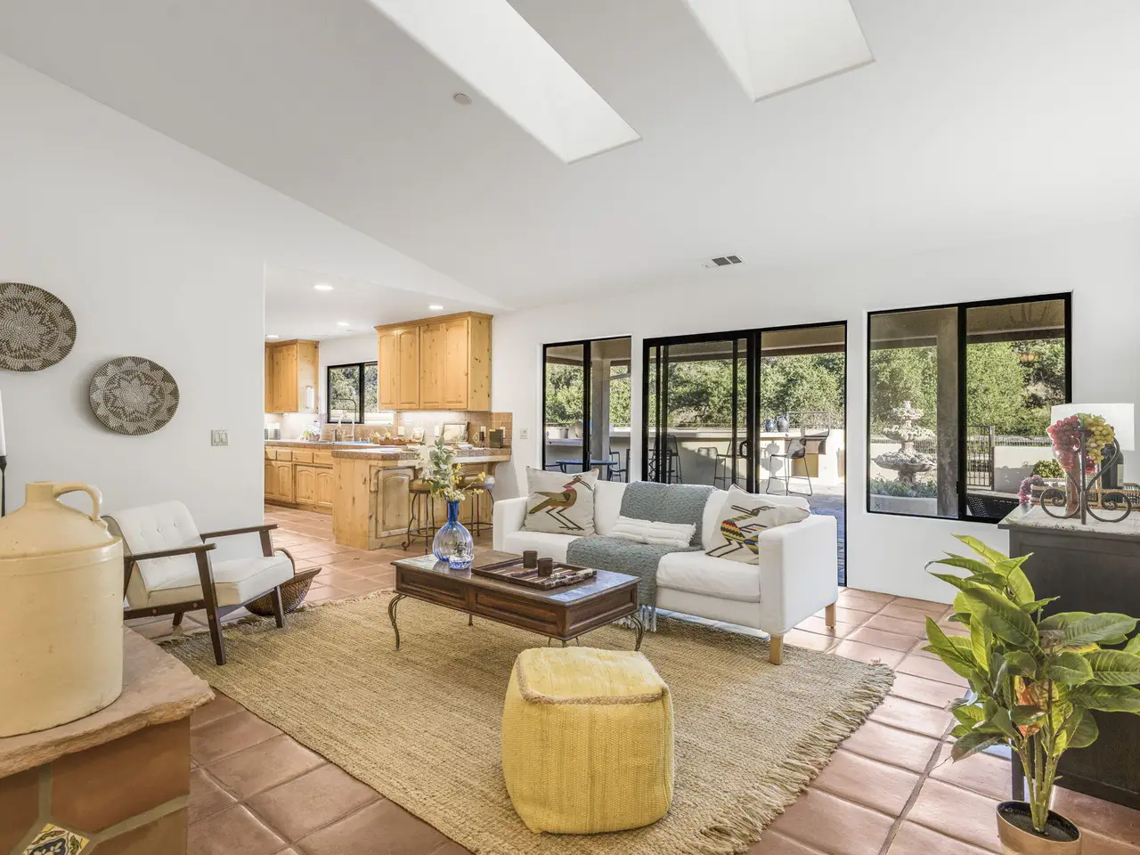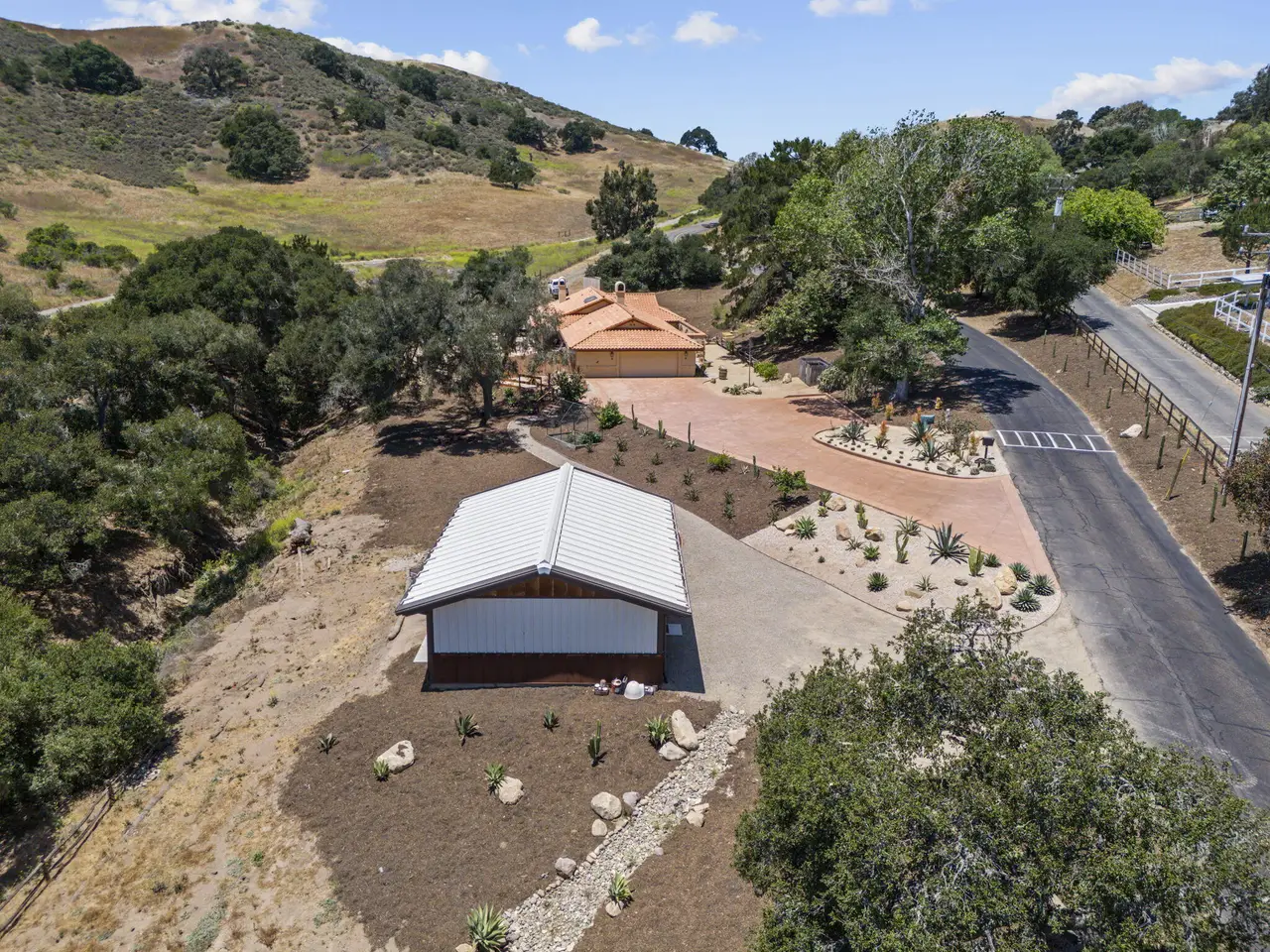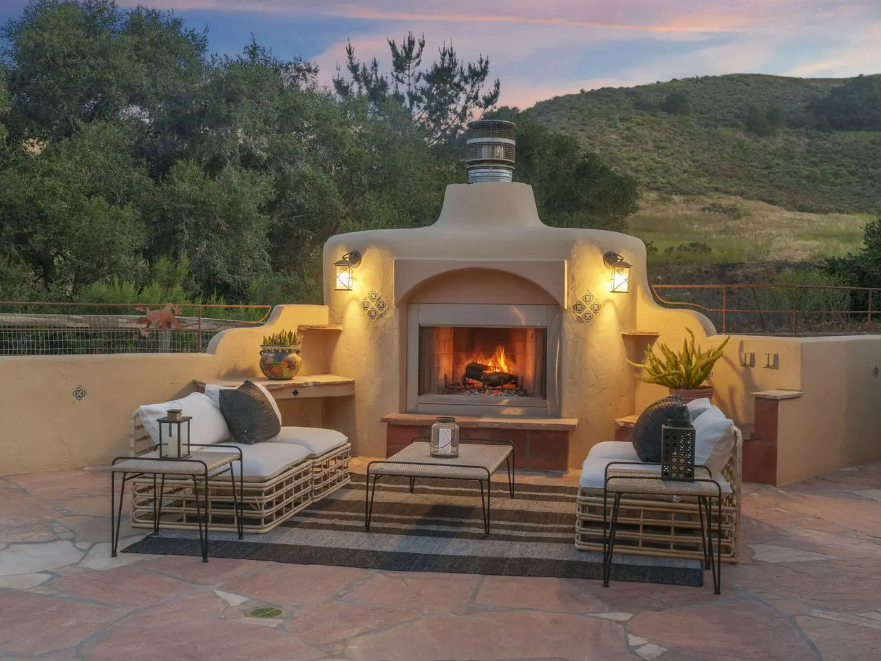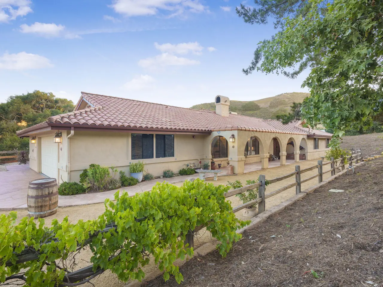 Exquisite craftsmanship and versatility define this custom Spanish ranch-style home on 5.78 tranquil acres in the gated Jonata Springs Ranch. Designed for those who love to entertain or dream of a small farm, horses, or multi-generational living, this property offers incredible indoor-outdoor flow and endless possibilities. The Arizona flagstone patio sets the stage for unforgettable gatherings, featuring a fully equipped outdoor kitchen, fireplace, and Bullfrog Jacuzzi overlooking peaceful hillsides--ideal for relaxing after a ride or a day in the garden. Inside, unique details abound: 100-year-old front doors, a one-of-a-kind signed entry light, and a stunning three-sided fireplace that warms the living area and great room. High beamed ceilings, Saltillo tile, and wood floors complement the open layout with dining area, wet bar, and spacious office. The home is wired for seamless work-from-home capability with Cat5e cabling and Ubiquiti Access Points. The chef's kitchen features knotty alder cabinetry, a stainless farmhouse sink, bar seating, and premium appliances all opening to the family room and patio. The primary suite offers a custom fireplace, spa-like bath, and direct access to the hot tub and outdoor shower, while two guest bedrooms provide comfortable accommodations for family or visitors. Even your fur babies are pampered with a dedicated climate-controlled dog room featuring automatic watering and direct yard access. A fully permitted 900+- sq ft workshop adds flexible options for hobbies, a studio, or future guest space. Residents of Jonata Springs Ranch enjoy 10+ miles of meticulously groomed, deeded equestrian trails and one of the valley's most reliable private water associations. Whether your dream is entertaining under the stars, keeping animals, or building a family retreat, this exceptional property offers the space, beauty, and freedom to make it yours. For additional Jonata Springs Ranch information visit jonatasprings.org
