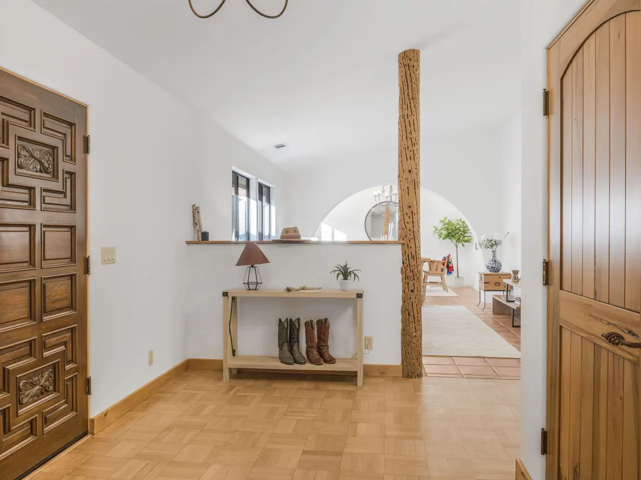 - High beamed ceilings