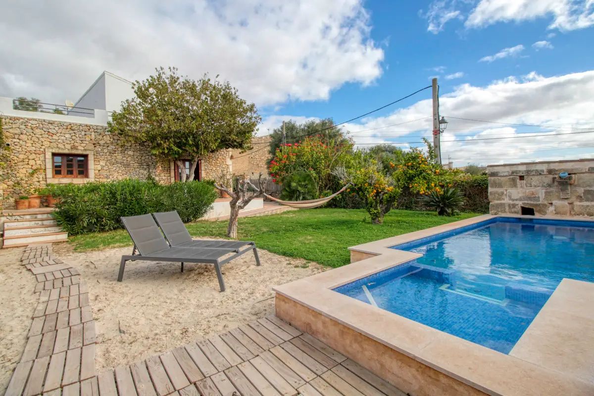 For sale is this fantastic traditional mid-19th century house, renovated, extended and licensed as a holiday rental license, ETV, since 2015 for 9 guests. It is located on a quiet street in Búger. The spacious property is entered via the charming front patio, which opens onto the garden with pool, two terraces with barbecue and outdoor dining area. During the renovation, the rustic style was retained and enhanced. The house is spread over two floors and has 4 double bedrooms and 3 bathrooms. On the ground floor there is a large entrance hall, a spacious living room with fireplace, a large kitchen with built-in furniture and dining area, two bedrooms, one with an en-suite bathroom with shower and built-in wardrobe, the other with a bathtub. On the upper floor there is a fantastic, partially covered terrace of more than 80 square meters. From the terrace there are beautiful views and direct access to the double bedroom, a recently renovated shower room and the fourth double bedroom. Thanks to its orientation and location, it enjoys the sun all day long. The beautiful stone facade with its thick walls keeps the house cool in summer and warm in winter. It has an old cistern with the possibility of collecting rainwater. Oil central heating with radiators in all rooms including the kitchen. Cast iron fireplace inserted into the existing chimney. It also has a small cellar in the basement. Very interesting as a second home and the remaining months to use its license for holiday stays. There is also the possibility of purchasing an adjacent building plot of 90 square meters. Contact us to arrange a viewing.