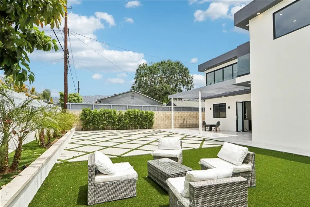 Burbank Show Stopper!!! True definition of Modern Elegance in every corner of this home inside & out. Walk in through the wide custom glass door and be amazed by the absolute beauty this Stunner has to offer. Just completed in (June 2025) with entertainers open floor plan featuring 4 bedrooms and 4.5 luxurious baths, large living room with beautiful large tile floors opens to the one of a kind slick & modern custom chef's kitchen with a huge center island and built-in appliances, high ceilings and recessed lighting throughout. The primary bedroom features a large private balcony, en-suite luxe bath with dual sink, floor to ceiling designer tile and a huge shower. Additional highlights include glass stair railings, designer interior doors, built-in surround sound, electric blinds, custom Italian accent wall finishes, engineered wood flooring upstairs, built-in security cameras, smooth stucco exterior, and elegant gold brass fixtures throughout. Large private back yard with patio and space for pool and entertainment. The curb appeal is off the chart, this home is truly unforgettable. Words and pictures simply don’t do it justice. This is one of those MUST SEE homes I promise there won't be any regrets.