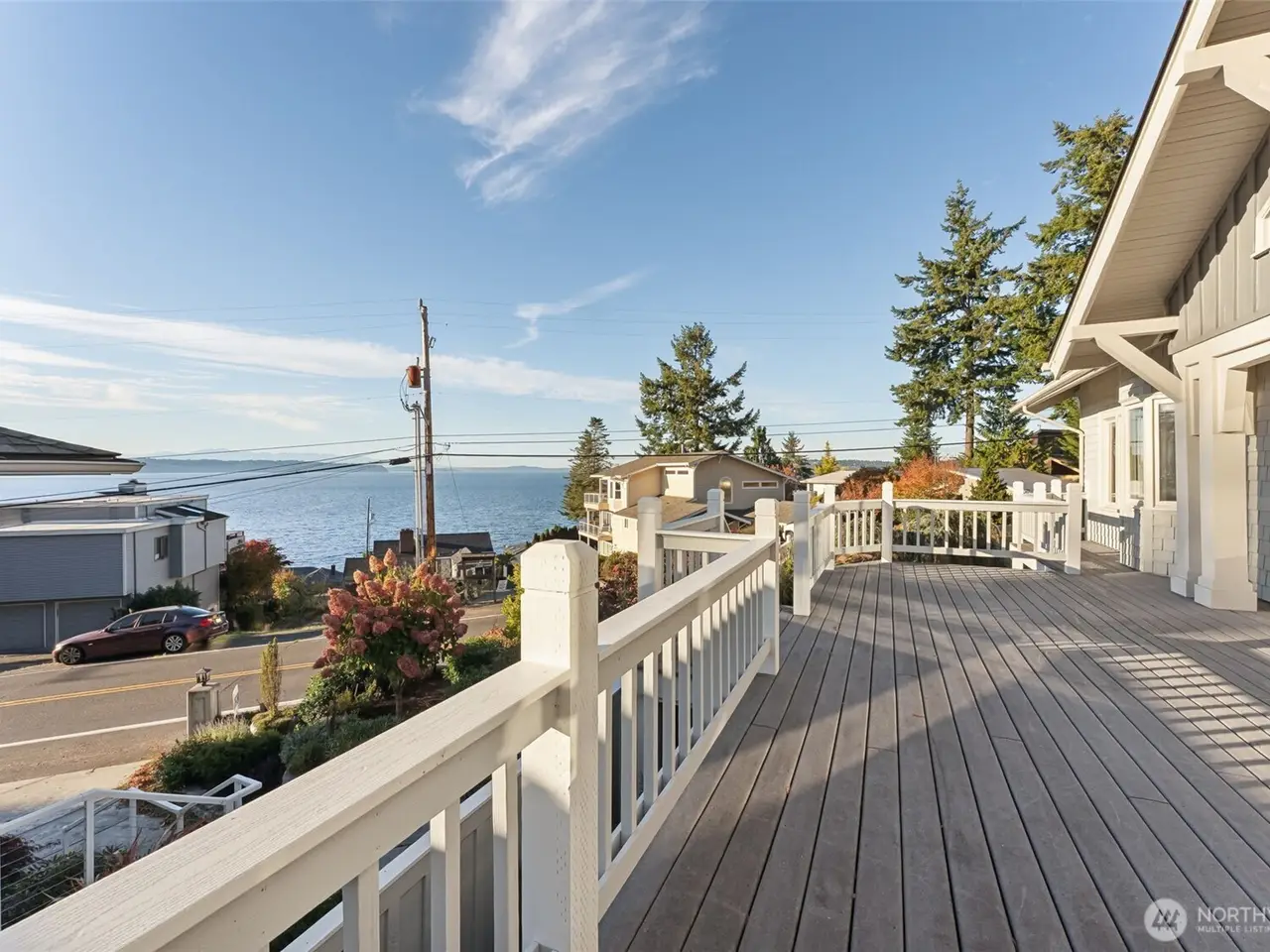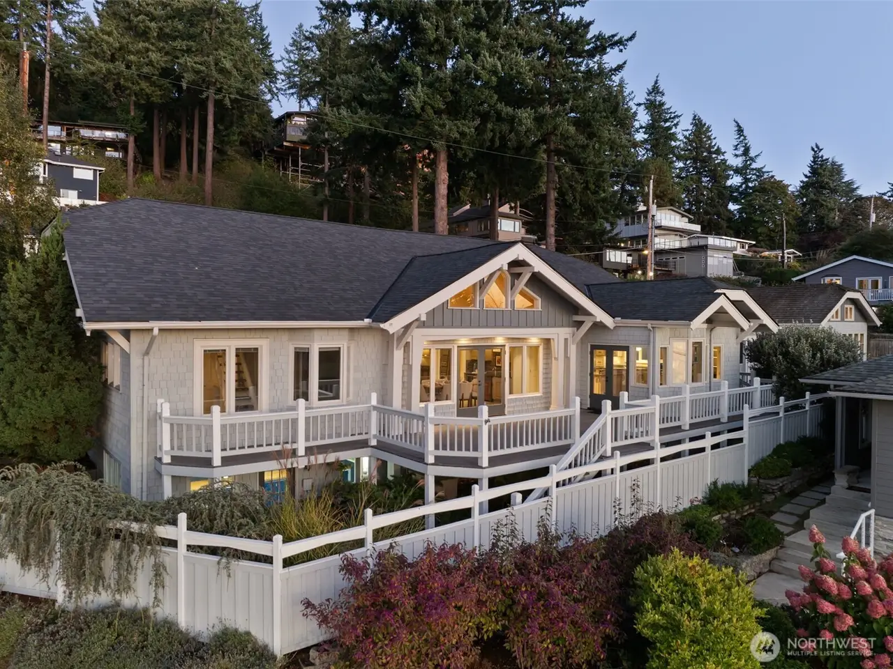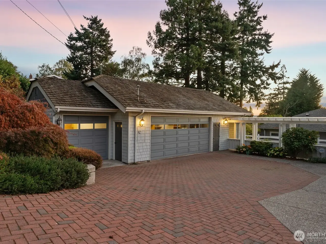 Set just off Maplewild Ave, this Three Tree Point home offers breathtaking views of Puget Sound & the Olympic Mountains. A perfect blend of traditional architecture & modern design, home features beautifully updated kitchen & baths, a huge living room ideal for entertaining, tall ceilings & a big statement fireplace. Enjoy stunning views from every west-facing room. Primary suite has a full bath, walk-in closet, & French doors that open to a private patio w/ views. Loft/ bonus room. Lower level: family room wired for surround, shop/ tool area, large laundry room w/ folding station, ample storage, & half bath. Generac Generator. Fully fenced, well-manicured yard. Detached 3-car garage w/ separate garden room & half bath. Welcome home!