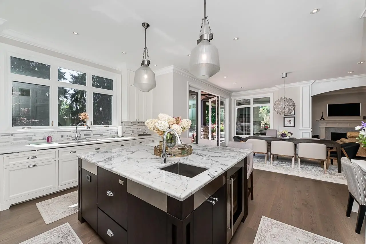 Gourmet island kitchen with lovely family room