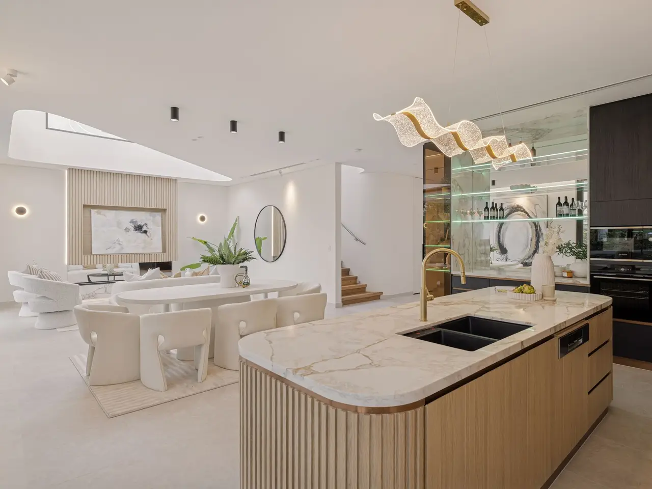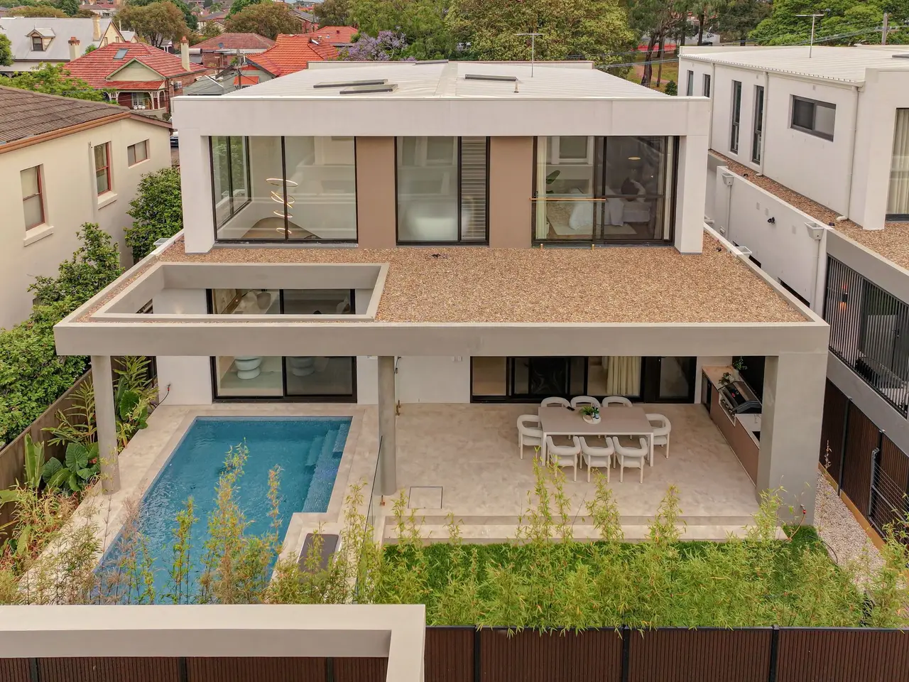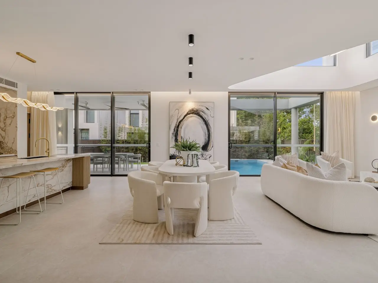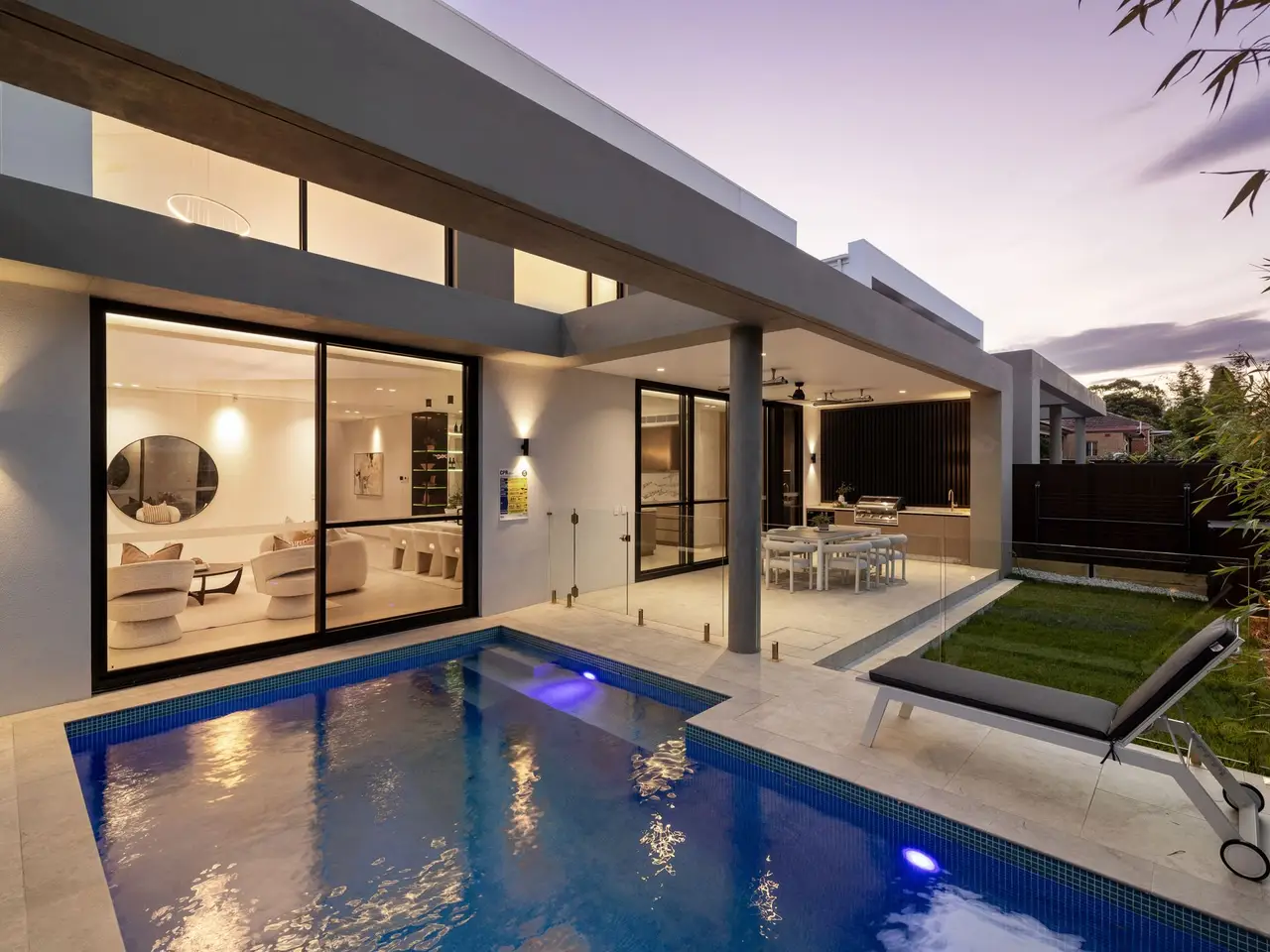 Fusing Scandinavian elegance with architectural precision, this bespoke residence promises a lifestyle of luxury, space and effortless in/outdoor entertaining. Its curated interiors reveal a sequence of living areas, a gourmet kitchen and expansive glazing that invites natural light across both levels. Set on a quiet street just 1km from Burwood Station and Burwood Plaza, the home is surrounded by elite schools, lush parklands and vibrant dining options. - Architecturally designed & custom built with high-end finishes throughout - A custom fireplace warms the expansive lounge/dining space that flows seamlessly outdoors - Expansive covered alfresco with a built-in BBQ overlooks the resort-style swimming pool - Fluted and marble kitchen, high-end integrated appliances, and a walk-in pantry, internal laundry - Five bedrooms with built-ins, four ensuites, master boasts a dual ensuite, freestanding tub and a walk-in wardrobe - Designer bathrooms with floor-to-ceiling tiles, bespoke luxury fittings and frameless glass - Three bedrooms feature built-in vanity desk storage and mirrors, ducted air-conditioning throughout - Interiors reveal a Scandinavian aesthetic with timbers, skylights and neutral hues throughout - Architectural façade framed by a landscaped garden and striking glass inclusions - Double automatic garage offers internal access plus driveway parking - Located within 1km of Burwood Station, elite schools and Burwood Plaza