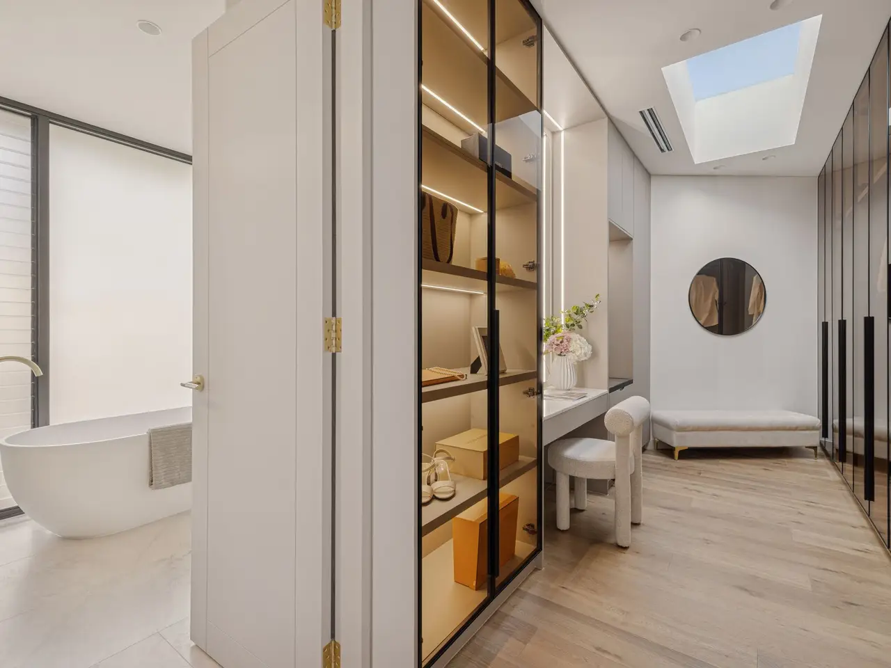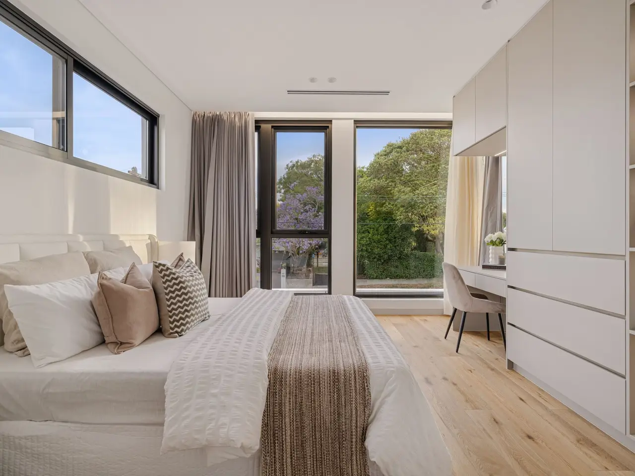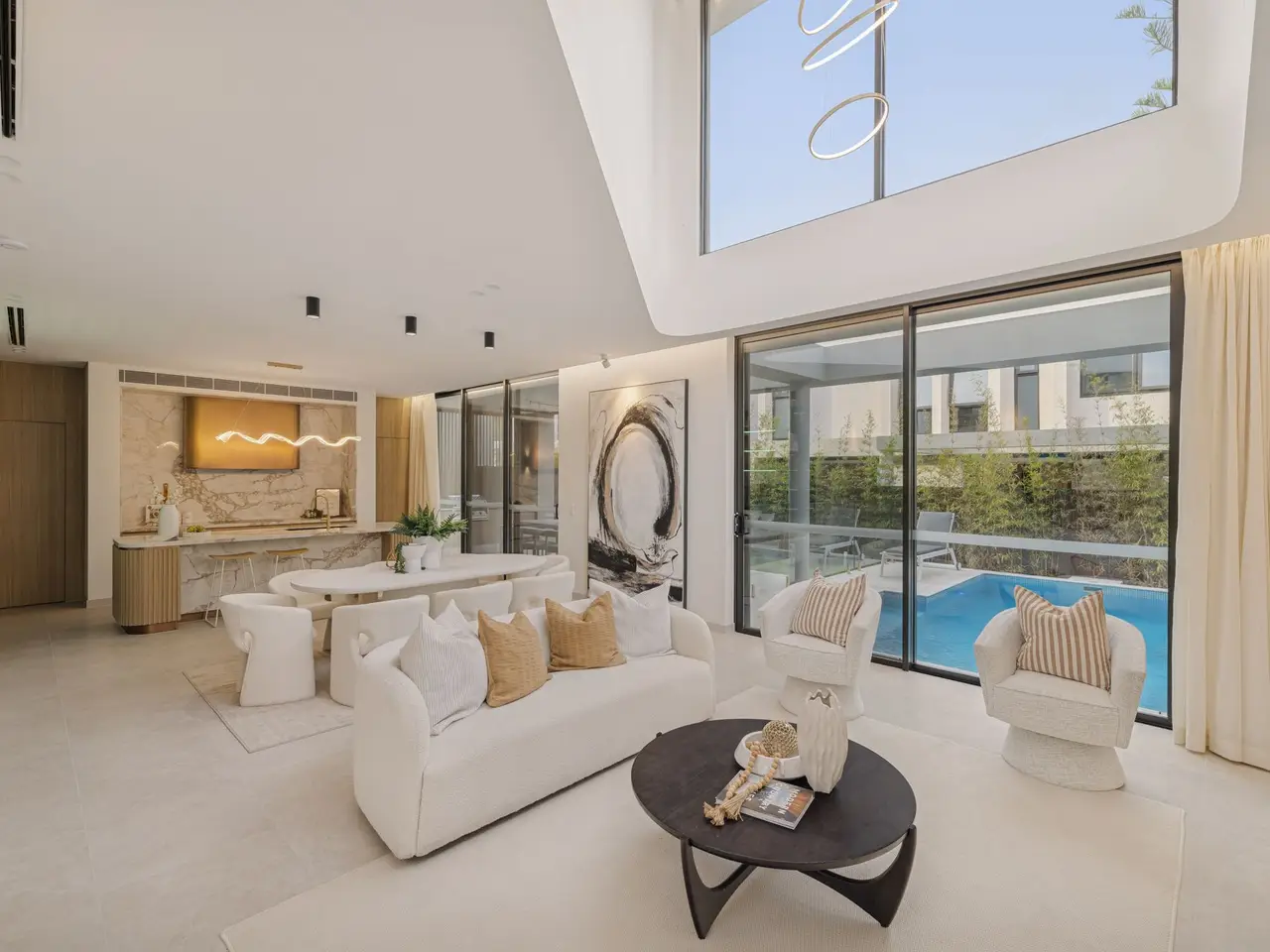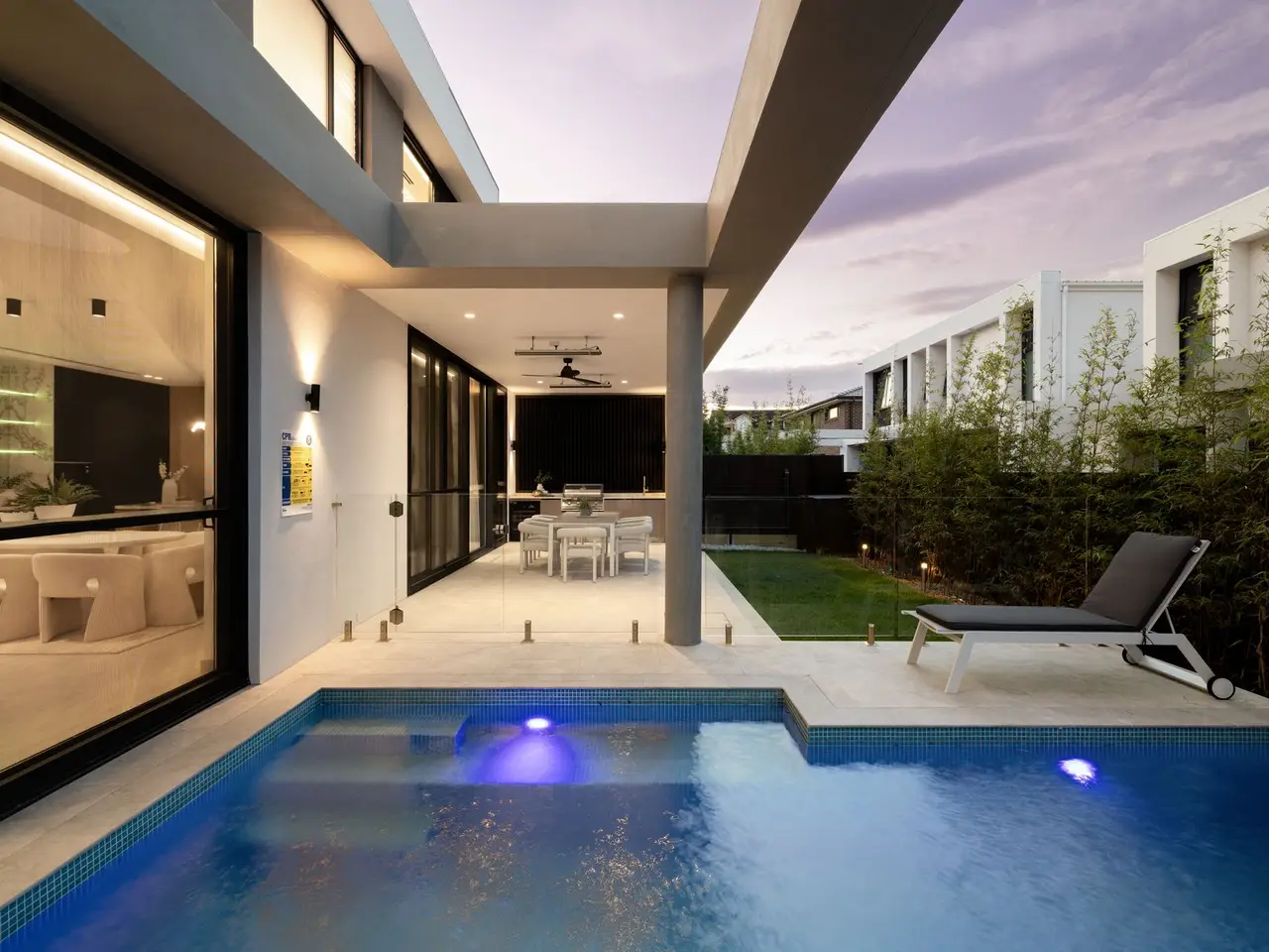 Fusing Scandinavian elegance with architectural precision, this bespoke residence promises a lifestyle of luxury, space and effortless in/outdoor entertaining. Its curated interiors reveal a sequence of living areas, a gourmet kitchen and expansive glazing that invites natural light across both levels. Set on a quiet street just 1km from Burwood Station and Burwood Plaza, the home is surrounded by elite schools, lush parklands and vibrant dining options. - Architecturally designed & custom built with high-end finishes throughout - A custom fireplace warms the expansive lounge/dining space that flows seamlessly outdoors - Expansive covered alfresco with a built-in BBQ overlooks the resort-style swimming pool - Fluted and marble kitchen, high-end integrated appliances, and a walk-in pantry, internal laundry - Five bedrooms with built-ins, four ensuites, master boasts a dual ensuite, freestanding tub and a walk-in wardrobe - Designer bathrooms with floor-to-ceiling tiles, bespoke luxury fittings and frameless glass - Three bedrooms feature built-in vanity desk storage and mirrors, ducted air-conditioning throughout - Interiors reveal a Scandinavian aesthetic with timbers, skylights and neutral hues throughout - Architectural façade framed by a landscaped garden and striking glass inclusions - Double automatic garage offers internal access plus driveway parking - Located within 1km of Burwood Station, elite schools and Burwood Plaza