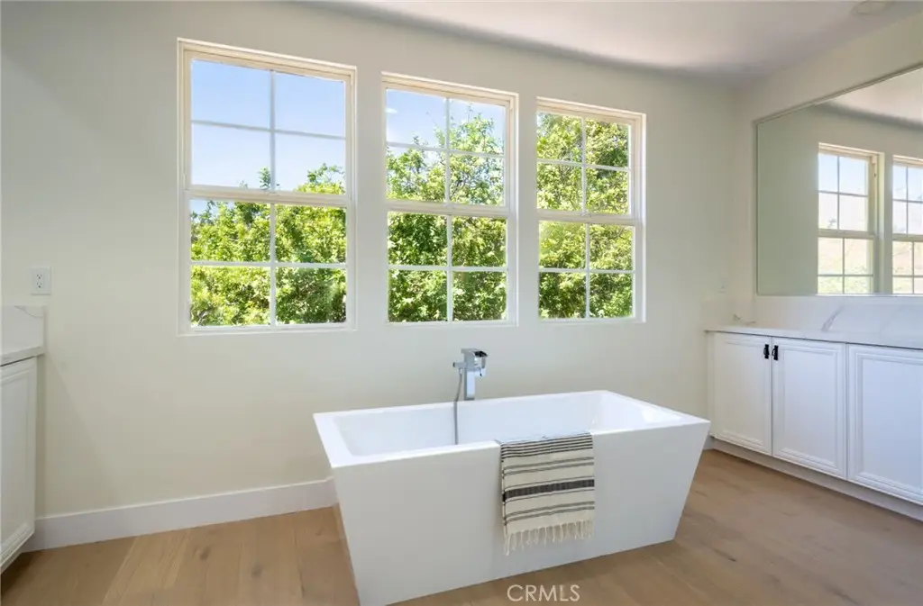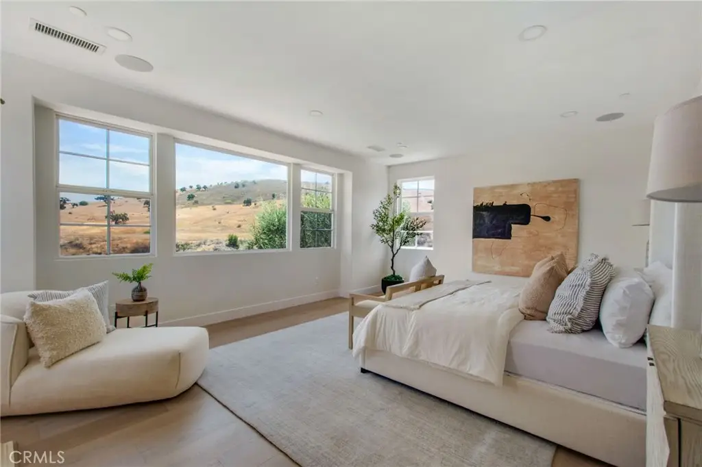 Private View Home in Mont Calabasas Estates. Set on over half an acre, this 5-bedroom, 6-bath estate showcases panoramic hillside and mountain views. This beautiful property boasts an impressive array of upgrades and renovations. Recently refreshed with new wood flooring throughout the entire house, fresh interior and exterior paint, new led lighting inside and out, plus updates to the kitchen and baths, the home feels bright, modern, and move-in ready. Architectural appeal - the home offers formal living spaces that connect seamlessly with the informal spaces. Chef's kitchen offers the best in form and function with quartz countertops, top-of-the-line Viking and Sub-Zero appliances, island breakfast bar, large breakfast room, and walk in pantry - opens to the spacious family room with outdoor access. A main-level en suite guest room provides comfort and convenience. Step outside to an entertainer's dream backyard featuring a sparkling infinity pool, built-in BBQ, outdoor fireplace, and multiple lounge and dining areas. Upstairs, the primary suite is a private retreat with endless views, a large sitting area, expansive walk-in closet, and spa-style bath. Three additional en-suite bedrooms, a private office, and a versatile upstairs media/family room complete the layout. With garages for four cars, ample parking, and beautiful newly landscaped grounds, this home blends everyday comfort with true resort-style living--just minutes from Malibu beaches, hiking, dining, and award-winning Las Virgenes schools.