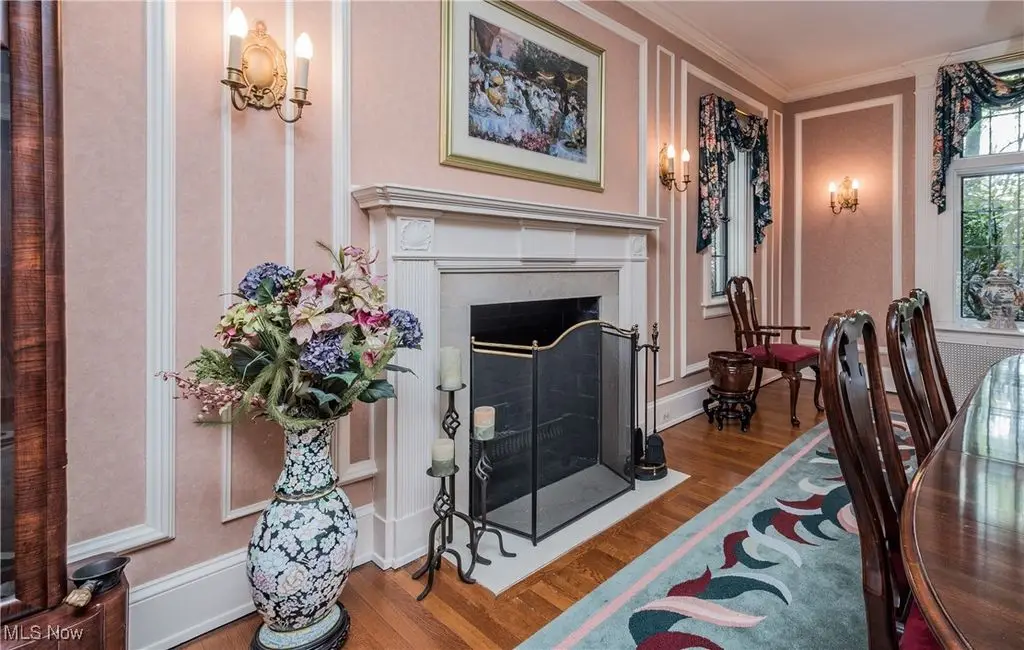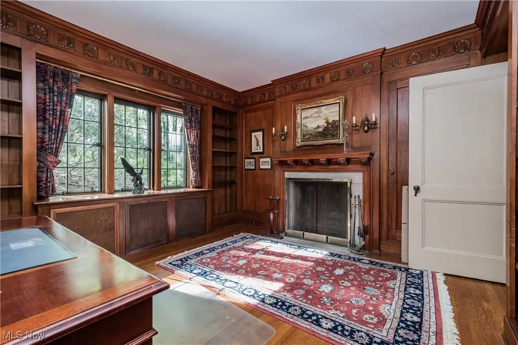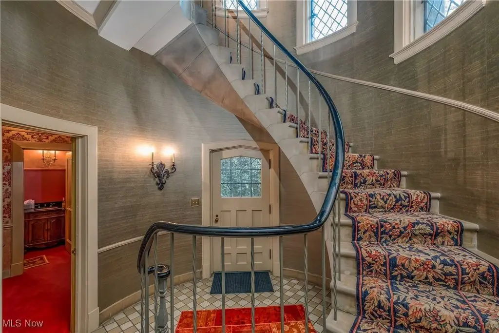Welcome to this architect deigned and built authentic English Tudor style home in the heart of Hills and Dales Village. This Architectural treasure is perched back off the road and soars 4 stories high with views of the beautiful neighborhood from every angle. This beauty was designed by Cleveland architect Abram Garfield and the original workmanship and details have been lovingly preserved throughout including the impressive 3 story sweeping circular Stone staircase, original light fixtures, built in cabinetry, 6 Fireplaces, slate roof and leaded glass windows (with newer storms). The main level boasts a cozy Family room that walks out through french doors to the front patio and includes a wet bar for entertaining. Formal and utility half baths and a large back mudroom near the 3 car attached garage. Ascend the majestic stone staircase to the 2nd floor main living area and you are surrounded by grand living areas, walls of windows/french doors (lead to back patio area) and comfortable living spaces. The Grand Parlor and Formal Dining spaces are meant for large gatherings with guests and family. The original wood paneled Library has a cozy wood burning fireplace and ample built in bookcases and cabinets. Enjoy your morning cup of tea or coffee in the bright Morning room that boasts the original terracotta tile floor and walks out to 2nd floor balcony. The modernized Kitchen is spacious with a Viking gas oven/range, ample storage, everyday Dining space and home management area. Perfectly placed between the Kitchen and Dining area is the originally appointed Butlers pantry that has built in china/linen cabinets and an additional prep sink. The 3rd and 4th floors offer a total of 9 bedrooms (1 is currently used as a laundry room), 4 full bathrooms and a Bonus Room that could be used as additional storage or additional living space. This is an opportunity to own a piece of history in one of the best known homes in Hills and Dales Village.