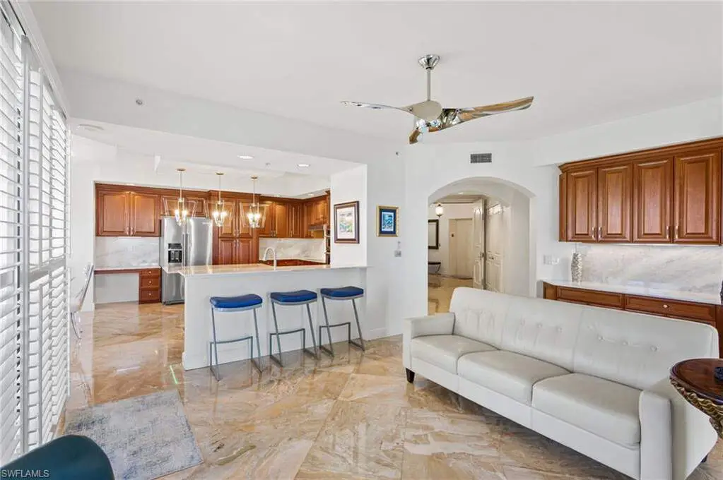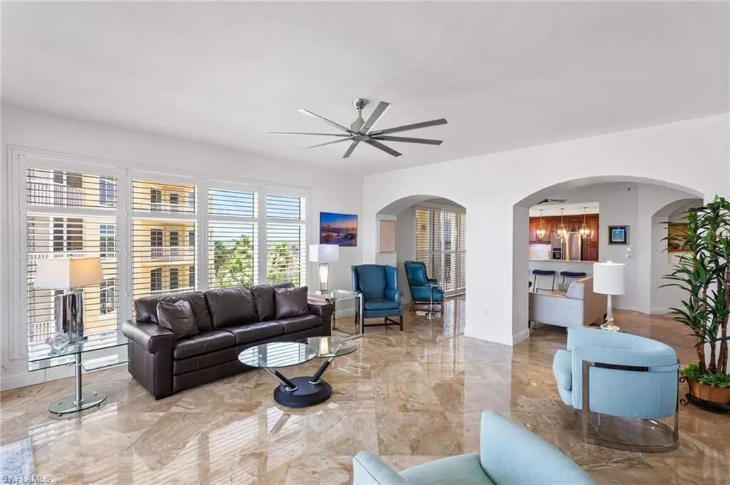 Experience luxury living at its finest in this exquisite end-unit high-rise unit in Tarpon Point Marina. The Davenport end unit is the largest floor plan with 3,048 sq ft of living space, Featuring 3 spacious bedrooms, a den, and 3.5 bathrooms, with 3 balconies. Every room is bathed in natural light and offers breathtaking panoramic views of the water and surrounding landscape. This impeccably designed residence boasts marble floors throughout, an updated gourmet kitchen, and refined finishes that reflect the highest standards of taste and elegance and comes completely furnished. No detail has been overlooked-no expense spared. A two car garage is close by the Elevators for easy access. Located in this premier waterfront community that offers an unparalleled lifestyle with resort style amenities,waterfront dining, boutique shopping, marina, fitness center, and vibrant entertainment just steps from your door. A recent completion of state required reserve study, ensures you peace of mind & worry-free ownership. In addition, the HOA maintains an A+ financial position with fully funded reserves. Don't miss this rare opportunity to own a piece of paradise where luxury meets convenience in one of Southwest Florida's most coveted destinations.