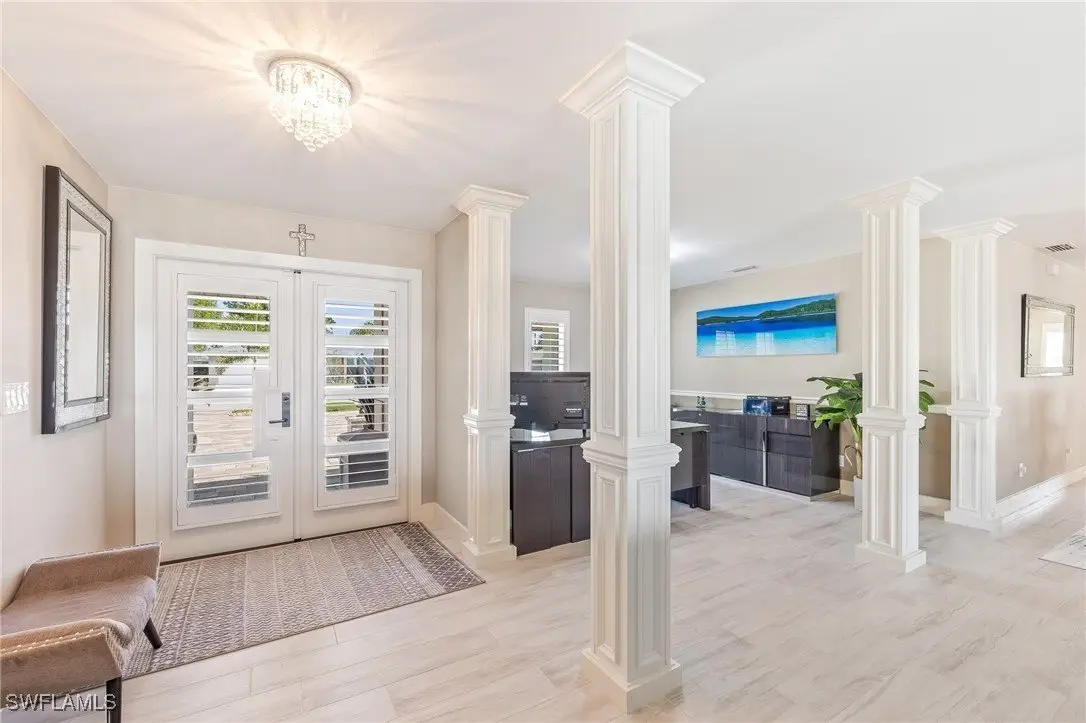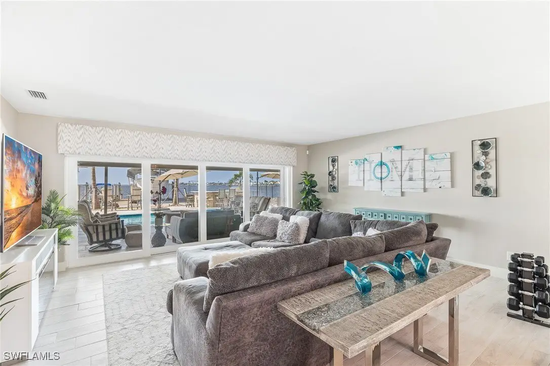 Welcome to your dream home on the river in beautiful Cape Coral! This exquisite three-bedroom, three-bathroom residence offers breathtaking views of the river from every room, creating an idyllic backdrop for daily living. The heart of the home is a gorgeous kitchen, featuring an expansive layout with luxurious granite countertops that's truly a culinary paradise. Every detail of this home has been thoughtfully updated, with everything new pre-hurricane and no flooding. The property boasts a new roof and an electric T-pole installed after Hurricane Ian, ensuring peace of mind. All windows and doors are impact-resistant, providing both safety and energy efficiency. The home is equipped with a state-of-the-art security system for added protection. Comfort is paramount, with new air conditioning and ductwork, alongside updated Pex plumbing and attic insulation for optimal energy performance. The elegant travertine pool deck and sidewalk extend your living space outdoors, perfect for entertaining or simply enjoying the serene environment. The outdoor amenities are equally impressive, featuring a new dock and seawall, along with two boat lifts (24,000 lb and 10,000 lb) and a boat canopy that is just three months old. A remarkable 9 ft concrete captain's walk stretches from lot line to lot line, offering a stunning vantage point to soak in the waterfront views. Additional highlights include a convenient ice machine, a pool heater, a hot tub for relaxation, and a secure safe for your valuables. Notably, this home has no drywall damage from the hurricane, and the post-hurricane porcelain tile floors from Coretec add both style and durability. Don't miss this incredible opportunity to own a piece of paradise in Cape Coral! Schedule your private showing today and experience the beauty and luxury of riverfront living!