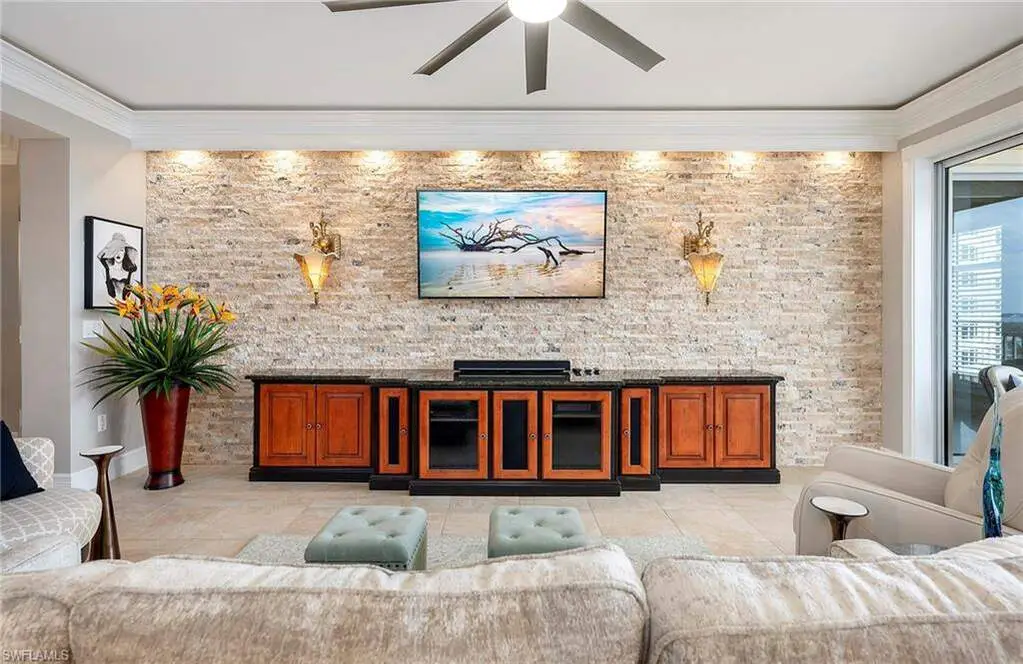 Tarpon Point - the finest luxury condo living in Cape Coral! From the moment you drive through the gates, you will be impressed by this development. This is the perfect location for someone who wants to really enjoy where they live and not need to leave for entertainment. Everything is right in your backyard! From the secured lobby, you will enter the semi-private secured elevator which opens right into your unit. Enter the custom leaded glass doors to an amazing bright and open condo. The views are spectacular, watch the sunrise from the rear lanai and the sunset from the front veranda. Quality upgrades throughout the unit, crown molding, custom lighting and sound systems, designer wall coverings and window treatments. All bedrooms have their own bathroom and the owner's suite is in a completely separate wing of the unit providing complete privacy even when you have guests. No expense has been spared throughout. The features are too numerous to list-please see attached features list for all of the technical and electronic upgrades not found in most other units. The unit comes with everything included with the exception of some personal items. Don't wait to come and live the dream.