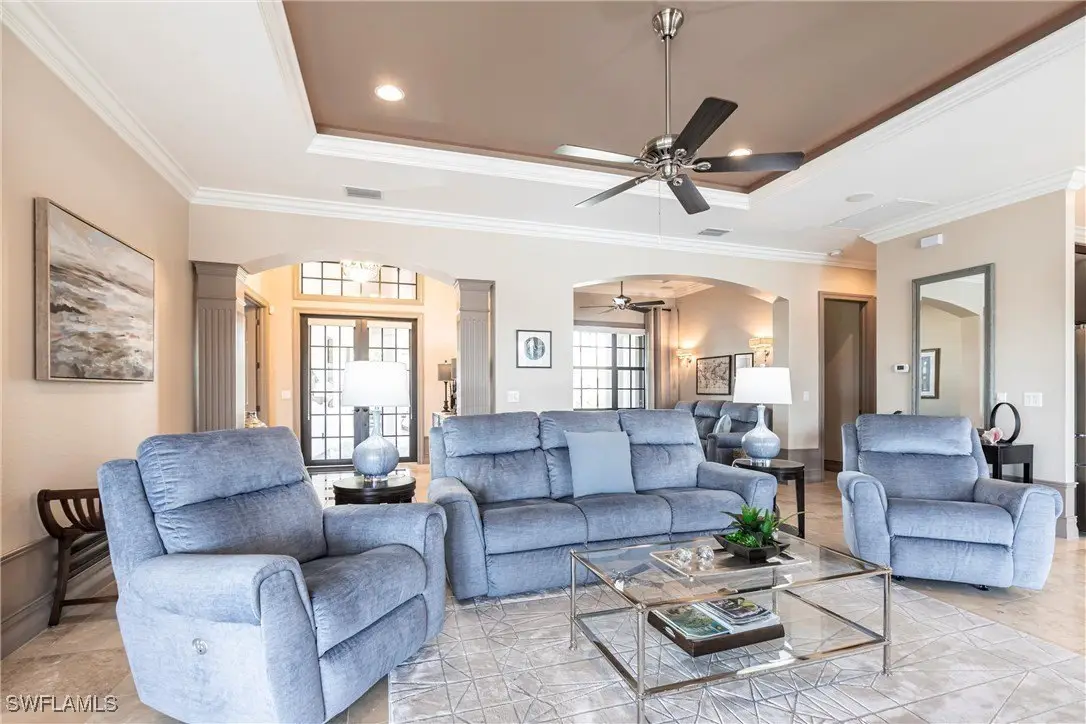 Introducing a truly unique, custom-built two-story home situated on an oversized corner lot with direct Gulf access, offering rear Southern and Western exposure. Nestled at the end of a peaceful cul-de-sac, this exceptional property boasts breathtaking preserve views at the junction of Southern Spreader and the 250-foot wide Maxwell Canal. From the moment you step inside, you'll experience a sense of tranquility in this expansive and luxurious home. With 4 spacious bedrooms and 4 beautifully appointed baths, this residence features multiple indoor and outdoor seating areas, each offering stunning water views. Every corner of this home is thoughtfully designed, from the impressive staircase to the travertine floors with intricate inlays, impact-resistant windows, and a chef-inspired kitchen. The oversized laundry room is bathed in natural light, and the large 3-car garage offers ample space for storage and convenience. This home is equipped with electric fabric hurricane shutters that also serve as sun blinds and windbreakers, providing both safety and comfort. The electric heated pool and spa, along with the expansive screened-in deck area complete with a mosquito control system, create the perfect environment for outdoor relaxation. With over 280 feet of waterfront, including a long captain's walk, a boat dock designed for sailboats, and a deck ideal for watching stunning sunsets, this property is a boater's dream. Offered turnkey, this home is ready for you to move in and start enjoying right away. Recent upgrades include a new AC system, a durable metal roof, a new heater, storm shutters, and a boat dock with a Tiki hut and captain's walk. Schedule your private showing today to see all that this extraordinary home has to offer.