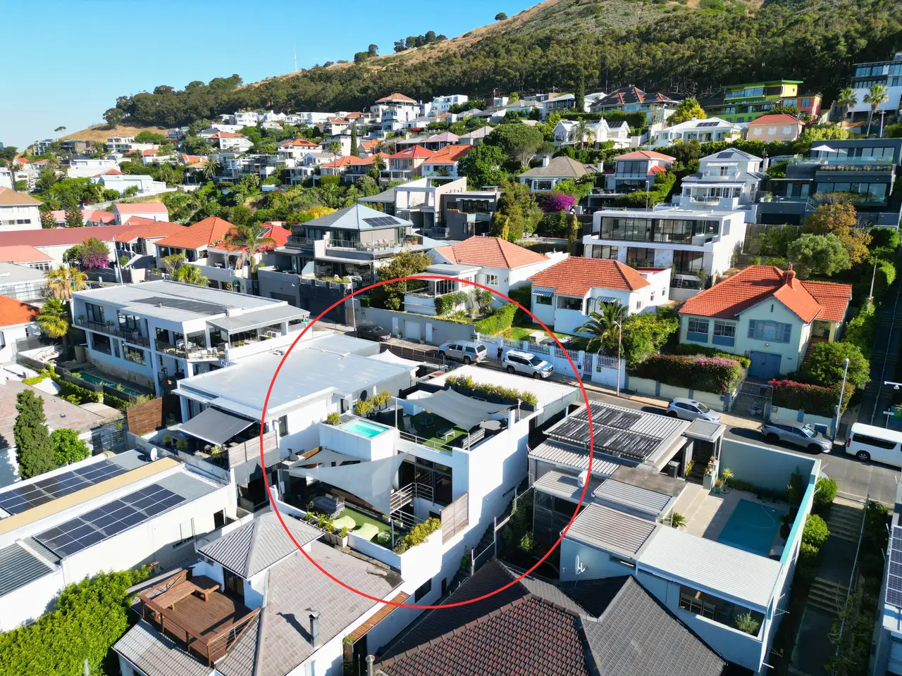 The living areas open to a sun-drenched deck via sliding doors, creating an effortless flow of light, air, and space. Street Level: Arrive through a welcoming walkway into the heart of the home. The open-plan living and dining area, designed for easy entertaining, is flanked by a sleek kitchen. Glass doors extend the space onto an outdoor braai terrace, inviting you to spend evenings dining under the stars. Top Level: An elevated splash pool and entertainment deck offer a private retreat, perfect for lazy afternoons or sunset gatherings with friends. Lower Level: Downstairs, the main bedroom suite opens onto a small courtyard, while two additional bedrooms share a stylish bathroom. A study nook completes the level, ideal for working from home or for quiet moments of reflection. Bathed in natural light and alive with fresh air, this home captures the essence of relaxed, modern living. Size: Street level and lower level living areas - 172 sqm Entertainment area on the top level - 72 sqm Location: Perfectly positioned at the foot of Signal Hill, and just moments from Green Point Stadium, the V&A Waterfront, and Cape Town’s vibrant CBD, this home offers the ultimate City lifestyle as a quiet retreat. You’ll love the outdoor decks and rooftop pool with breathtaking views of the sea, stadium, and Green Point Park—all of this within walking distance of trendy coffee shops and some of Cape Town’s best restaurants. A designer lock-up-and-go for those who value style, convenience, and the pulse of city living. A perfect Cape Town setting - convenience, and the pulse of city living. A perfect Cape Town setting.
