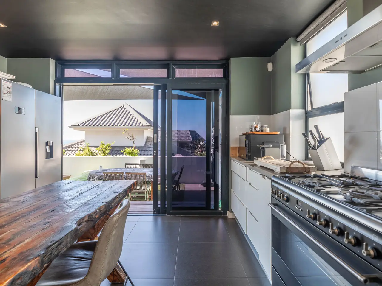 Sleek kitchen with glass doors