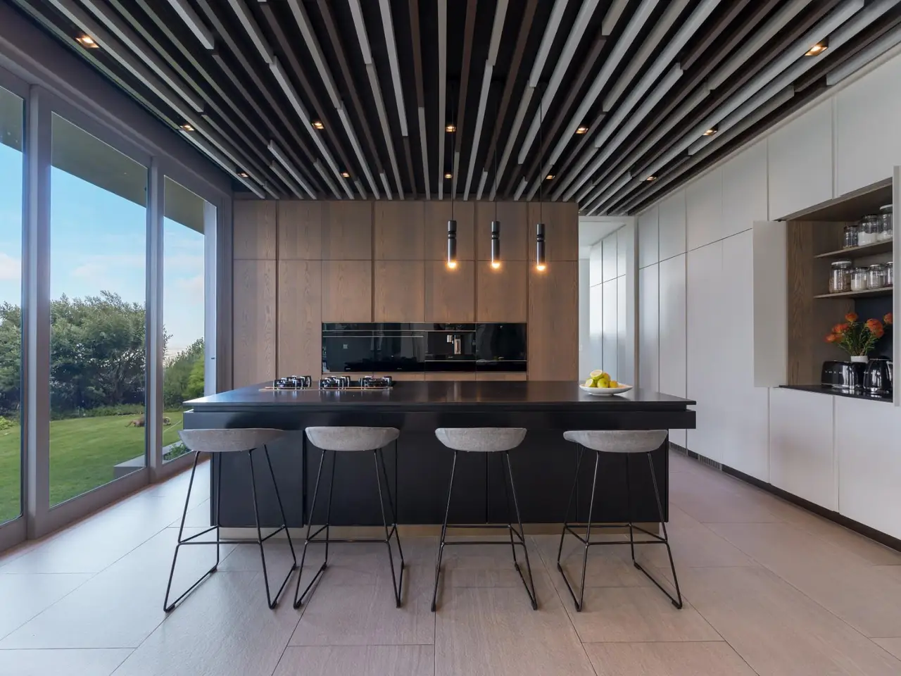 Cuisine design avec îlot noir mat élégant