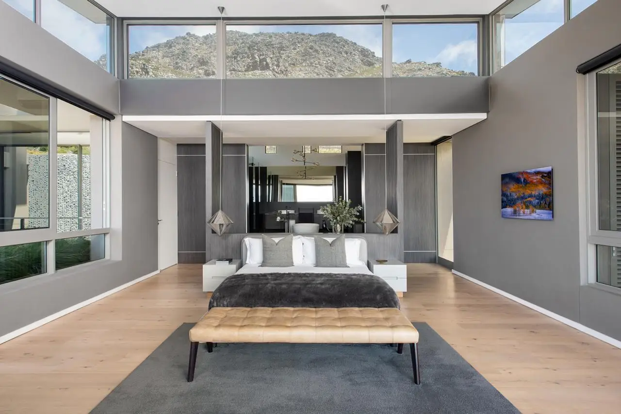 Un chef-d'œuvre de luxe moderne dans le domaine de Stonehurst Réveillez-vous sous les teintes dorées du lever du soleil qui filtrent à travers les baies vitrées, avec l'emblématique Montagne de la Table se déployant devant vous telle une œuvre d'art. Plus qu'une simple maison, ce joyau architectural est un sanctuaire privé offrant une vue imprenable, une intimité incomparable et un emplacement privilégié au sein du prestigieux domaine de Stonehurst. Conçue pour un style de vie sophistiqué Conçue par le célèbre Stefan Antoni de SAOTA, cette résidence allie harmonieusement élégance contemporaine et sérénité naturelle. Nichée dans un domaine sécurisé, elle offre un havre de paix à quelques minutes de l'effervescence du Cap. Dès l'ouverture de la grande porte coulissante en bois, une sensation de grandeur vous enveloppe. L'entrée à double volume, baignée de lumière naturelle, est une véritable ode à l'excellence du design. Un escalier flottant en chêne aux élégantes balustrades noires s'élève avec grâce, agrémenté de suspensions sculpturales signées Tom Dixon – un point focal artistique qui donne le ton à toute la maison. Le Rêve d'un Artiste Au cœur de la maison se trouve la cuisine design, un équilibre saisissant entre forme et fonctionnalité. Un îlot noir mat audacieux avec une plaque de cuisson à gaz intégrée et quatre places assises ancre l'espace, tandis que des appareils électroménagers parfaitement intégrés, un réfrigérateur de sommelier et des meubles de rangement du sol au plafond rehaussent son esthétique épurée. Un bar à café dissimulé ajoute une touche chaleureuse et gourmande à votre rituel matinal. Les espaces de vie ouverts s'articulent harmonieusement, redéfinissant le luxe moderne. La salle à manger s'ouvre sur une cour paysagée par des portes vitrées coulissantes, alliant confort intérieur et tranquillité extérieure. Le salon, chauffé par une cheminée à gaz et orné d'appliques murales design, invite à la détente tout en offrant une vue imprenable sur la montagne de la Table et les lumières de la ville. Harmonie intérieure-extérieure harmonieuse Découvrez le paradis des artistes, où la piscine à débordement à débordement devient un point de mire époustouflant. Idéalement située, elle offre une vue panoramique sur la montagne et le ciel, créant une connexion harmonieuse entre l'eau, la terre et l'air. Le jardin plat, agrémenté d'un four à pizza et d'une aire de jeux en bois, allie fonctionnalité et élégance pour un séjour en famille. Pour ceux qui aiment recevoir, l'espace barbecue intérieur, adossé à un mur en marbre noir saisissant et associé à un bar en miroir, constitue le lieu de rassemblement idéal. Des portes coulissantes s'ouvrent sur le jardin et le foyer, créant ainsi un cadre idéal pour les apéritifs, les repas en plein air et les soirées conviviales sous les étoiles. Un havre de paix La suite parentale est une oasis privée, conçue pour une sérénité absolue. De grandes baies vitrées offrent une vue imprenable, tandis que la salle de bains attenante ouverte évoque le luxe d'un spa. Une baignoire sabot ovale sculpturale, du carrelage noir brillant et des meubles en bois sur mesure créent une ambiance à la fois audacieuse et apaisante. Le dressing, aussi élégant que fonctionnel, offre de nombreux rangements. Caractéristiques exceptionnelles et détails soignés Chaque détail de cette maison témoigne d'un savoir-faire raffiné et d'une attention méticuleuse aux détails : Système audio surround intégré pour un divertissement immersif Hauts plafonds et vastes espaces maximisant la luminosité et la fluidité Un espace de vie intérieur-extérieur harmonieux, connectant la maison à la nature Piscine à débordement chauffée avec couverture électrique pour plus de confort Fonctionnalités domotiques, notamment stores automatisés et énergie solaire Avantages supplémentaires tels qu'une cave à vin et un foyer Emplacement et style de vie incomparables Située dans le très prisé domaine de Stonehurst, cette maison allie parfaitement sécurité, exclusivité et beauté naturelle. Profitez de sentiers de randonnée pittoresques, de points d'eau paisibles et d'un accès facile aux principales attractions du Cap. Ce n'est pas seulement une maison, c'est un style de vie. Avec son architecture moderne, ses vues imprenables et son intimité incomparable, cette propriété incarne le summum du luxe.