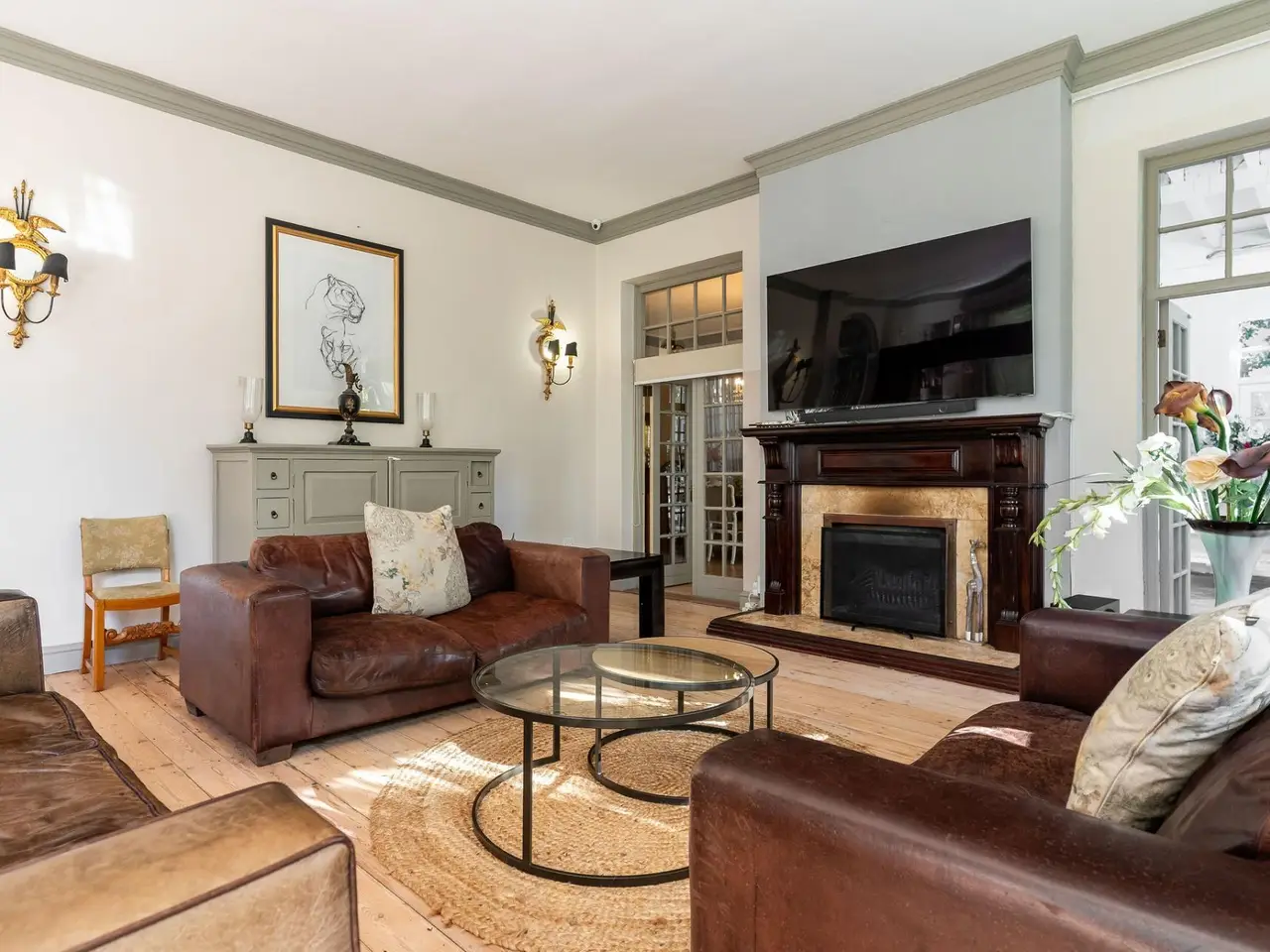 Experience TIMELESS ELEGANCE in this splendid Manor home with high ceilings and grand, fireplaces in most of the rooms. Located in a sought-after Fresnaye, this residence seamlessly combines classic charm with modern comfort. As you enter through the gates, you'll be greeted by a beautifully landscaped landscaped front garden with a gazebo and a sparkling swimming pool, creating a serene oasis. The grand entrance hall features a private lounge area with a bar and a classic fireplace, perfect for cozy evenings. The spacious dining hall with high ceilings is ideal for hosting large gatherings. The dining hall has french doors that open onto an undercover entertainment terrace and a sunny patio overlooking the garden and pool set in beautifully serene surroundings. The substantial kitchen is a chef's dream, and there are separate laundry and scullery areas. Upstairs, a staircase leads to four spacious bedrooms, each with its own en-suite bathroom and fireplace. Two of the bedrooms have private sunny balconies and the master en suite is grande and offers a gorgeous double-sided gas fireplace, reading lounge and doors leading out to small Juliette balcony. Notable features include ample storage space, an inverter for uninterrupted power supply, excellent security, wooden flooring, a double garage and covered parking for up to four vehicles in the driveway. Don't miss the chance to make this exceptional Manor home yours. Schedule your private viewing today with Cathryn New or Jessica Ross.