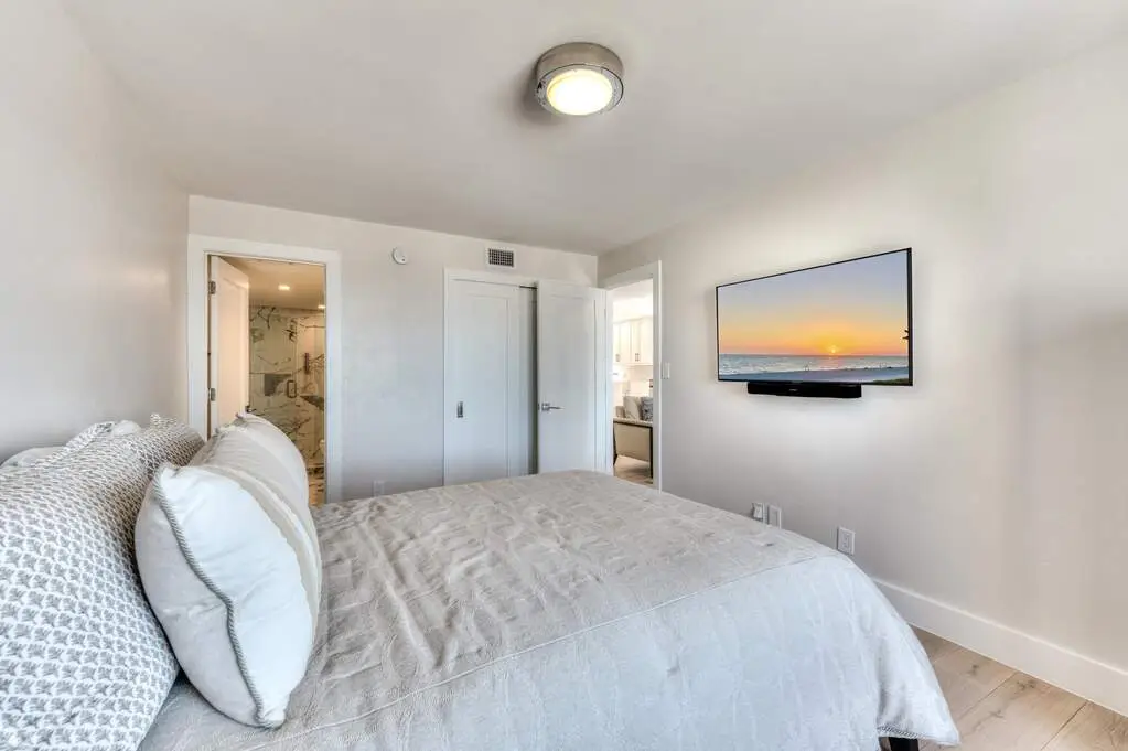 Just steps from toes in the sand!! Meticulously redesigned and completely renovated in 2020 by renowned island builder, Estate Management Construction, this exquisite 2-bedroom, 2-bathroom condo is a turn-key treasure offering unparalleled luxury within the gates of South Seas Resort. Every detail has been thoughtfully crafted to enhance both form and function. The reimagined floor plan maximizes space with an expanded kitchen featuring an extended quartz island, providing ample counter and storage space-perfect for entertaining or everyday living. Truly one-of-a-kind, this condo showcases white-oak engineered hardwood flooring, premium stainless steel KitchenAid appliances, impact-rated sliding glass doors, and elegant floor-to-ceiling tile in the walk-in showers. Coastal contemporary furnishings and hardwood shaker doors add to the refined yet relaxed aesthetic. This condo offers the ultimate island lifestyle with easy access to Captiva's renowned white sandy beaches, charming village shops, Starbucks, and local island dining eateries. Experience coastal living at its finest in this rare gem that blends luxury, comfort, and the essence of Captiva Island.