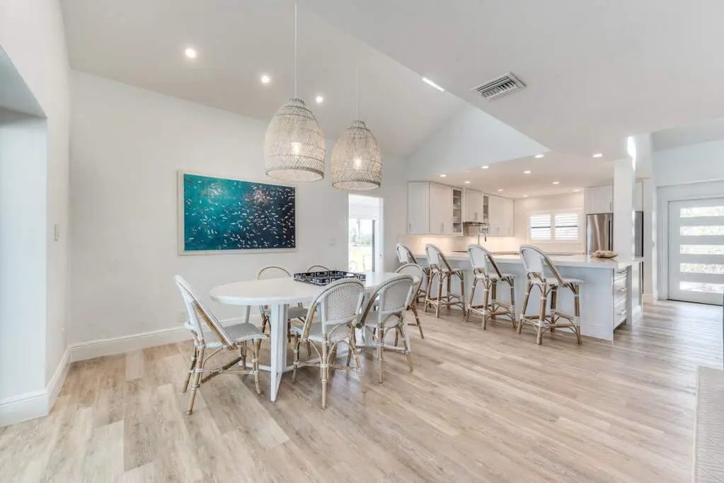 Experience unparalleled luxury and coastal elegance at 19 Beach Homes, a stunning direct Gulf-front, elevated, 3 Bedroom + Den, 3 Bathroom residence situated within on the coastline of Captiva. Completely redesigned and renovated in 2022, this breathtaking home offers top-of-the-line finishes and modern upgrades that blend seamlessly with the serene, natural beauty of its beachfront setting. Step inside to discover an open-concept living space adorned with luxury vinyl flooring, setting the tone for both durability and sophisticated charm. The custom floating staircase serves as a striking architectural centerpiece, enhancing the home's modern aesthetic while maximizing space and light. Designed for both style and functionality, the kitchen boasts custom wood cabinetry, thick quartz cabinetry, high-end stainless steel appliances, and a gas cooktop...Gulf-front cooking at its finest! The coastal-inspired furnishings create a relaxed yet refined atmosphere, perfectly complementing the breathtaking views from nearly every room. Expansive impact-resistant windows flood the home with natural light while providing peace of mind and energy efficiency. Step outside onto the composite decking, where you can unwind and take in the gentle sea breeze or enjoy direct beach access just steps away. Nestled inside the gated South Seas Resort, this exceptional property offers unmatched privacy and access to pristine Florida beaches. Whether you're looking for a serene retreat or a luxurious investment opportunity, 19 Beach Homes is a rare gem that perfectly captures the essence of Gulf-front living on Captiva Island.