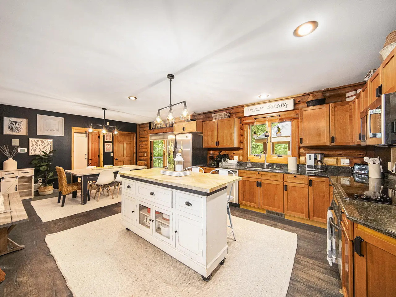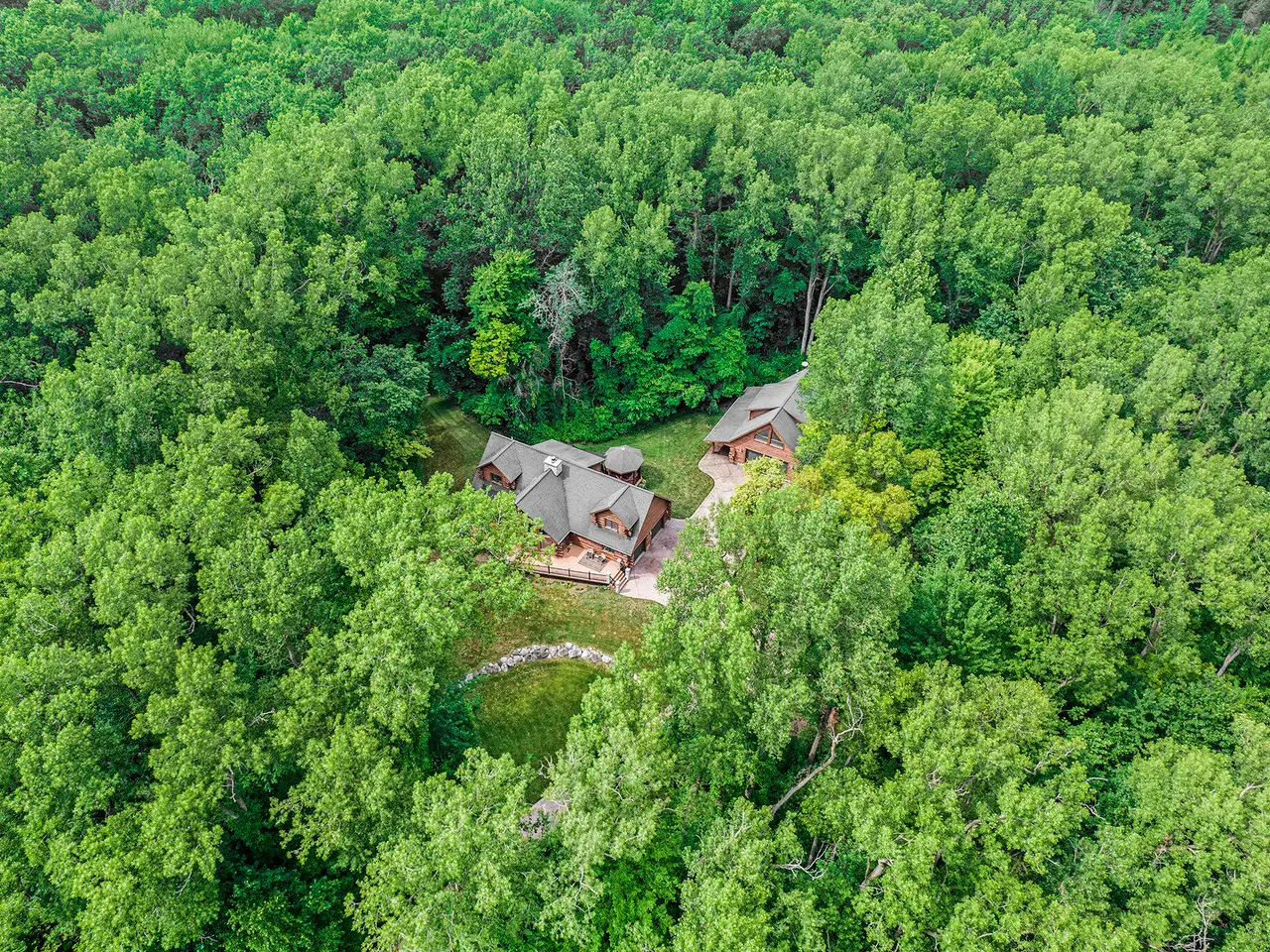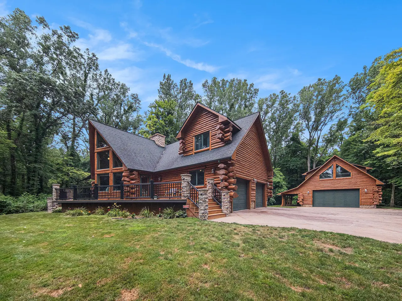 Log by Log, inch by inch, this custom-built white cedar home is love at first sight!! Unique in every way, and built with the utmost Care and meticulous Design. Located on a private 2.5 acre sanctuary, with over 3800sqft. of luxury living space. The main level has floor to ceiling Windows to maximize the natural light throughout and scenic view. Exposed wooden beams, a showcase Stone Fireplace and 10'' Oak Plank Flooring. A 1st floor primary Suite w/a Spa Tub, w/i Shower and door wall leading to the wrap-around Porch. Large 2nd floor loft area with 2 addt'l Bedrooms, Office, full Bath and then off to the finished Basement that screams entertainment! A secondary 28by40 Outbuilding built as a mechanics DREAM and an upper Suite to amazing to describe. Best said, this home is a 'WOW'