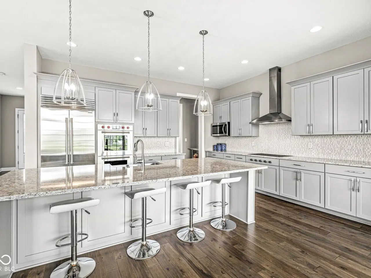 Impressive home with open floor plan & soaring ceilings. Deluxe Gourmet kitchen w/ brand new Wolf appliance including Subzero refrigerator, double ovens & 36 inch gas cooktop, in addition to a large island, walk in pantry, quartz tops, back splash & butler pantry. Expansive great room with cozy gas fireplace. Sunroom has lots of natural light, office on main level with french doors. Luxurious Primary suite has his & her closets, custom tile shower, free standing tub. Additional bedrooms have walk in closets & their own baths. Finished basement with family room/Game area, bar for entertaining, tons of storage, full bath & additional bedroom. Great outdoor space with covered patio & gas fireplace to enjoy your evenings or your morning cup of coffee overlooking the prof landscaped yard w/ irrigation. Home is located on a private cul-de-sac. Exterior was just painted in 2024. Spacious 3 car garage. This home has a lot of upgraded features throughout.